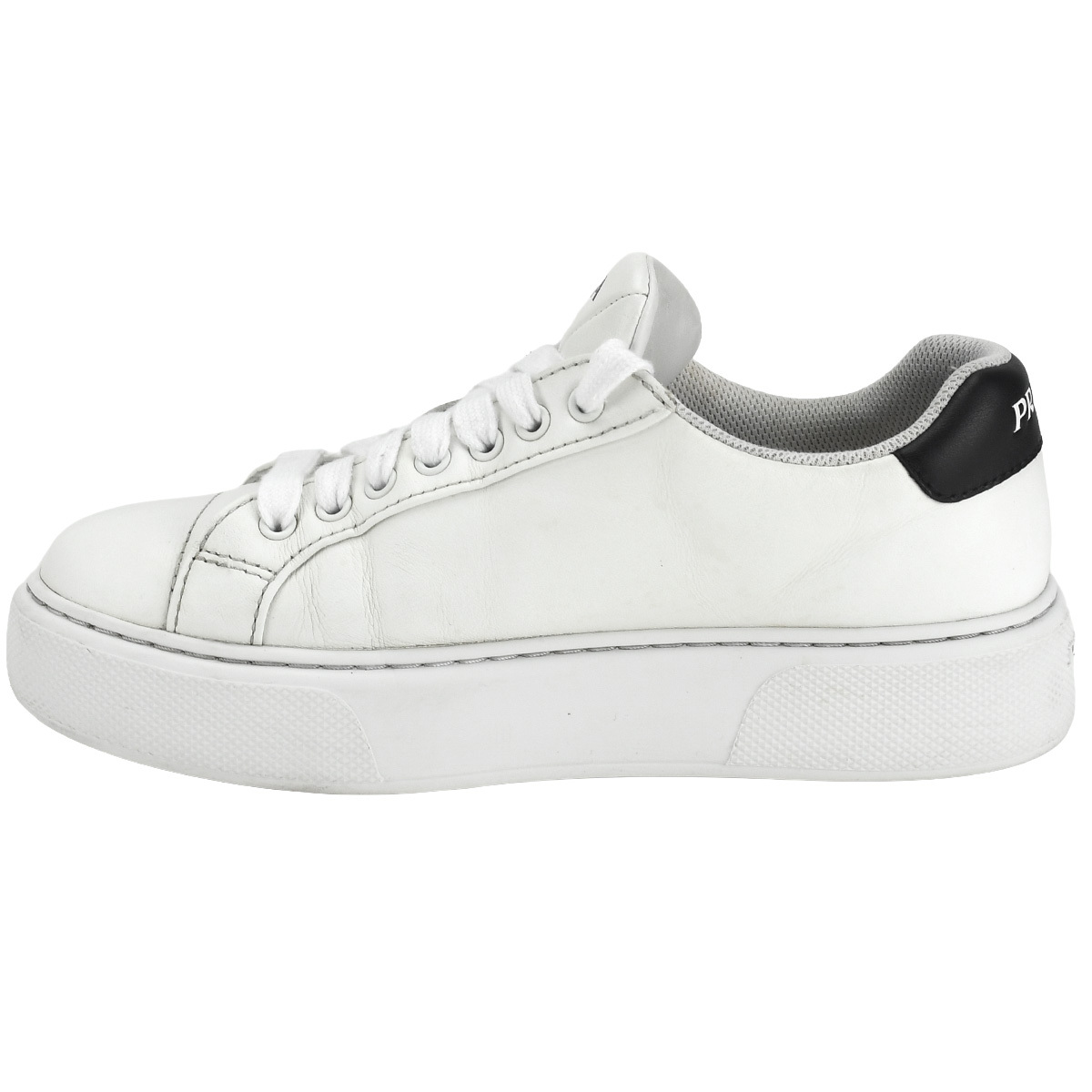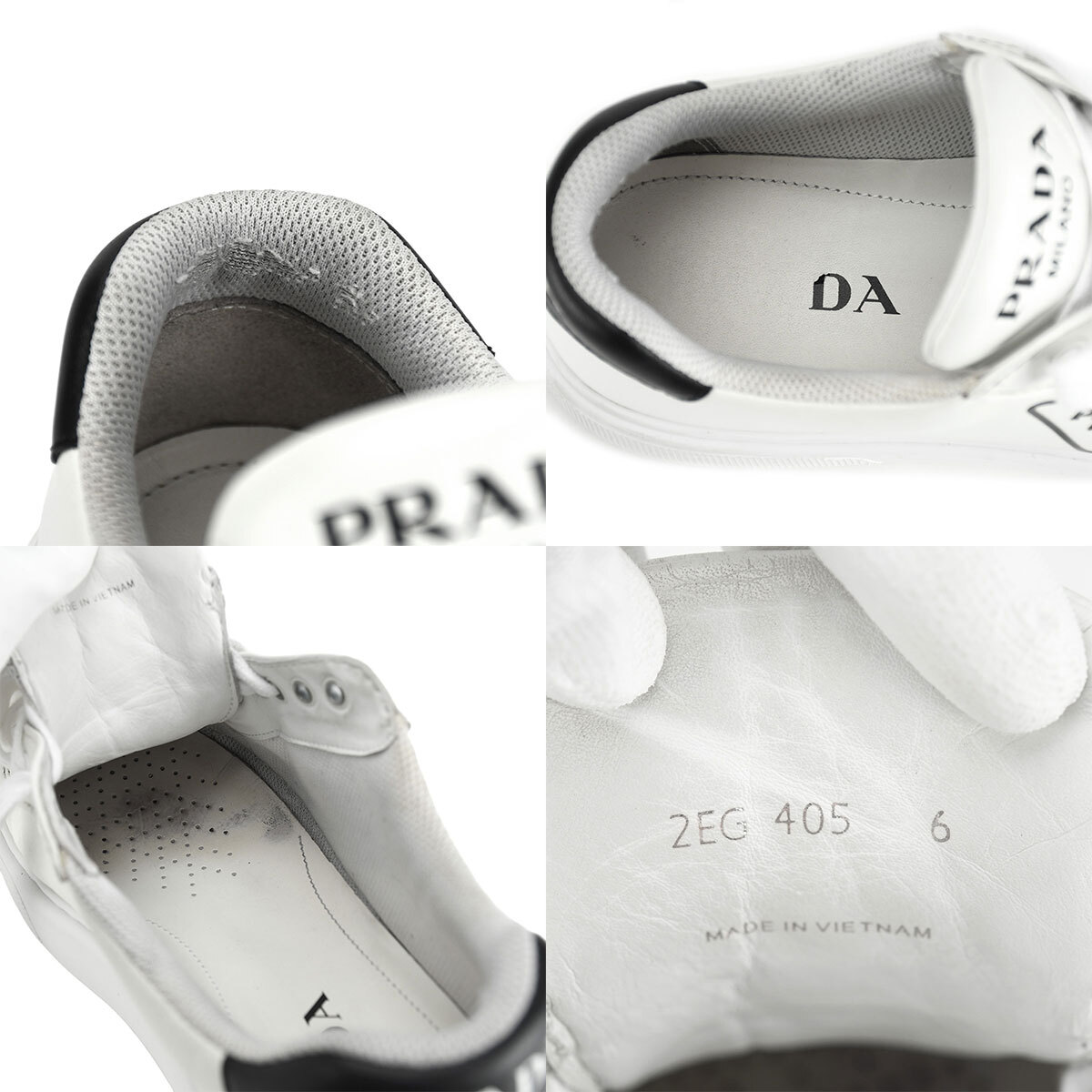 若干のレザースレ・シワ、インソールに汚れ、かかと内側にほつれあり。 その他特筆目立つダメージはなく、まだまだ永くご使用いただける綺麗な状態です。 プラダのローカットスニーカーが入荷しました。 スニーカーサイドにはトライアングルロゴ、踵にはブランドロゴが施されており、高級感溢れるおしゃれな逸品です。 ホワイトカラーのため、コーディネートに合わせやすく、様々なシーンにて大活躍間違いなしのアイテムです。 |