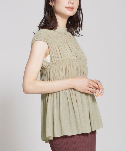 参考商品名:楊柳シャーリングブラウス ノースリーブ