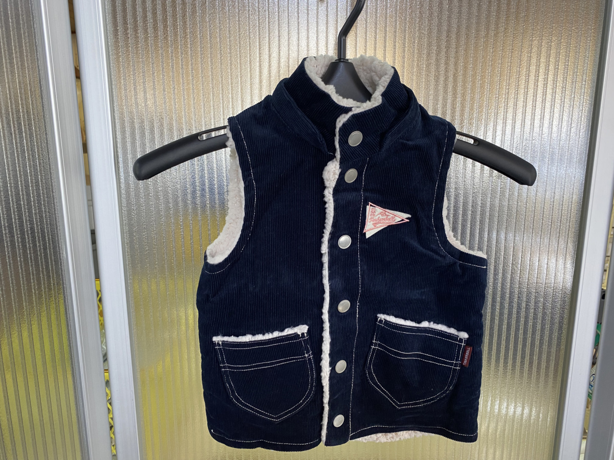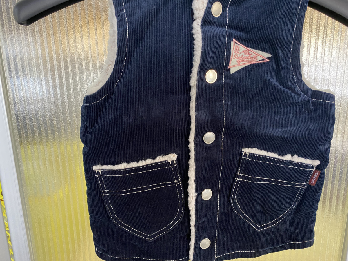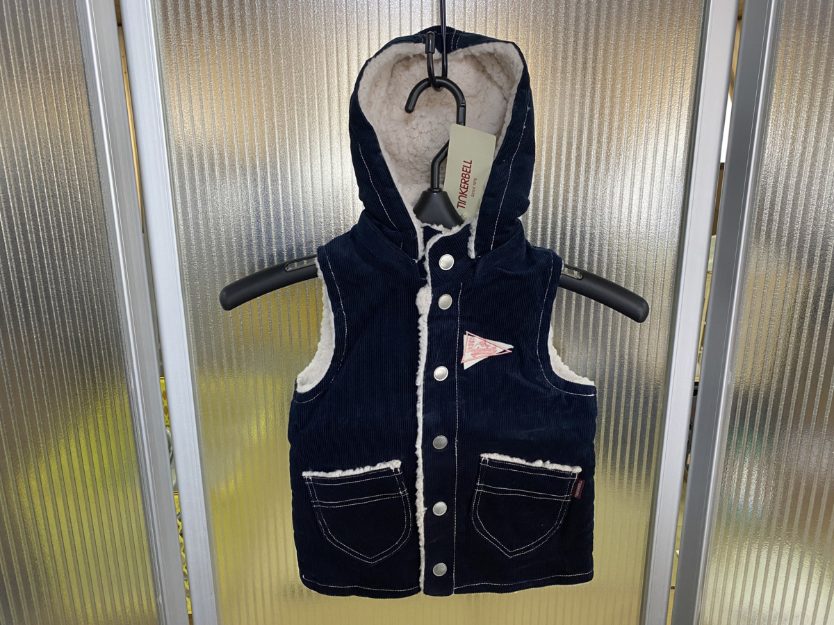 商品名 | Z4132送料無料【ティンカーベル ボアブード付ベスト:100】新品★暖か、コーディロイ ♪紺 |