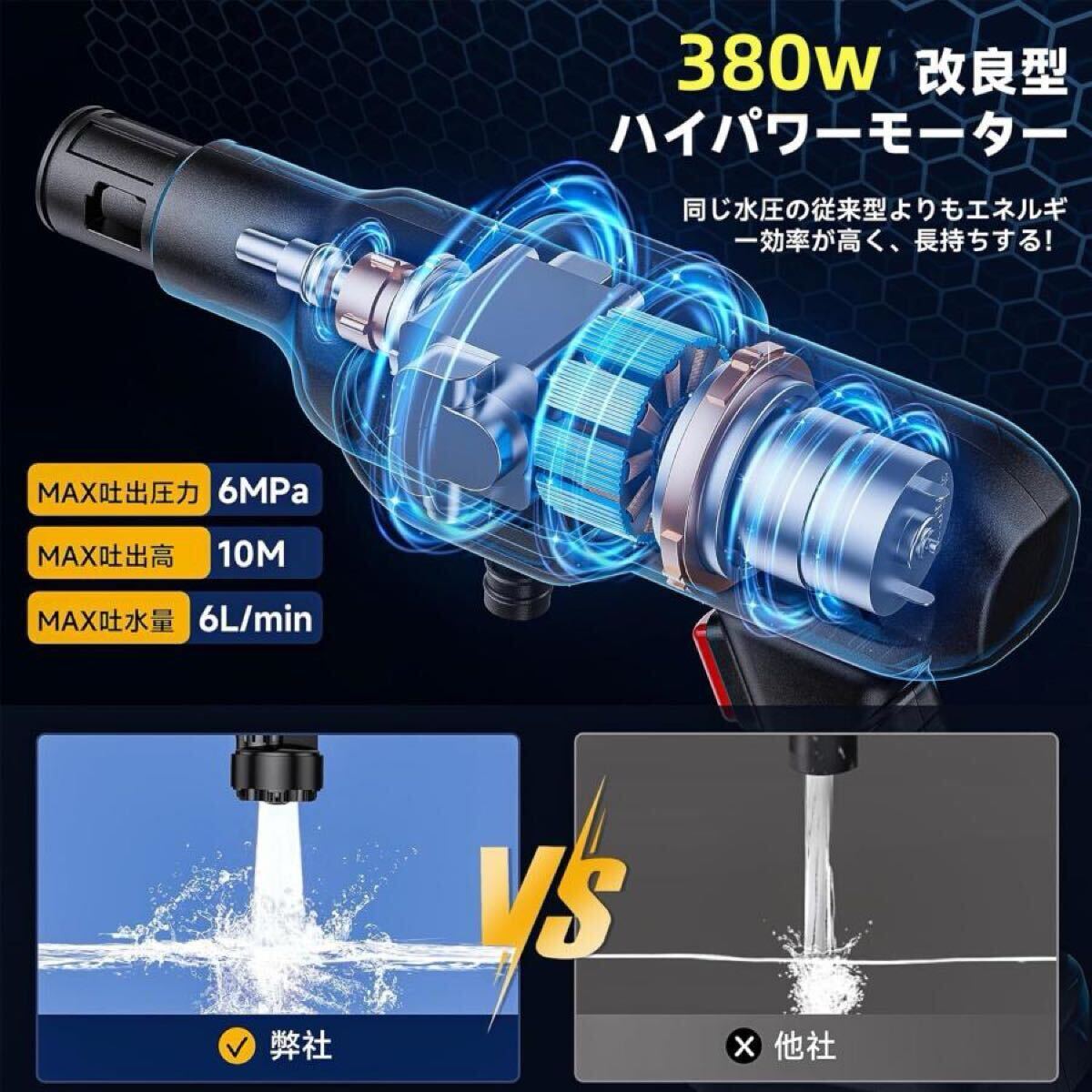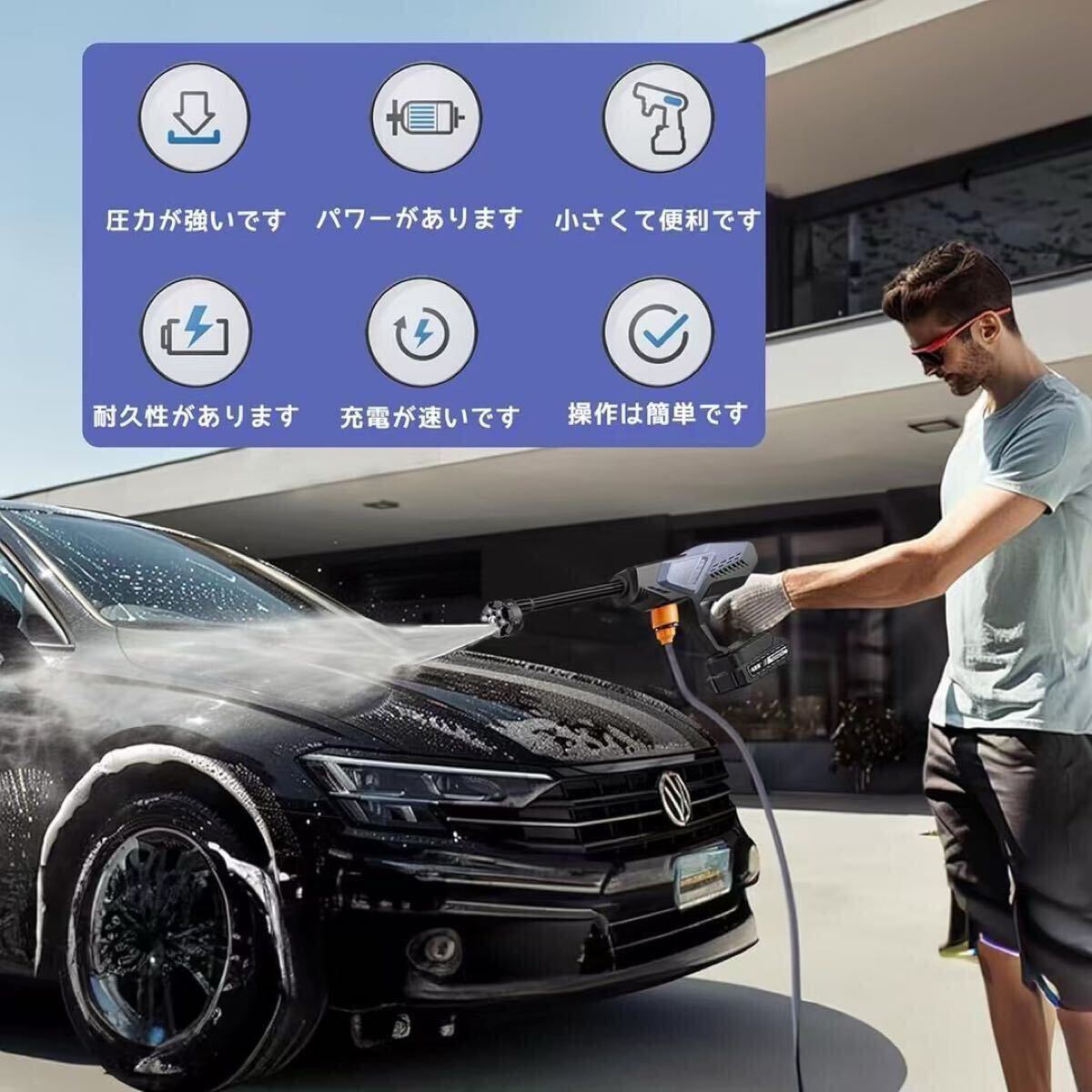 強力なコードレス高圧洗浄機:最大圧力1080PSIのこのコードレス高圧洗浄機を使用すると、短時間で迅速かつ効率的に洗浄できます。バッテリー駆動の高圧洗浄機は20,000mAhの大容量バッテリーを2セット搭載しており、合計容量は40,000mAhです。完全に充電すると100分以上動作できます。同時に、充電式設計により電源に接続する必要がなく、より便利に使用できます。