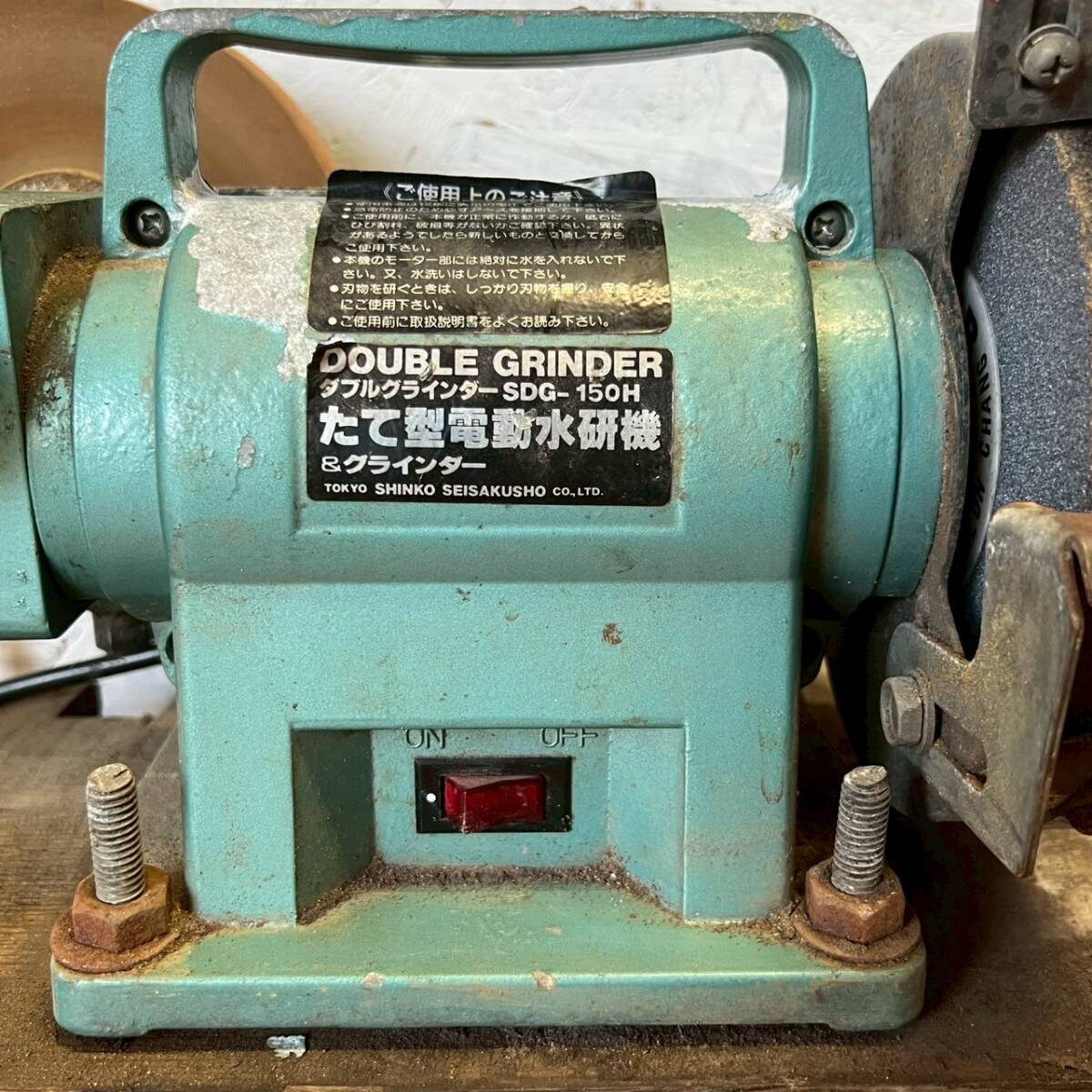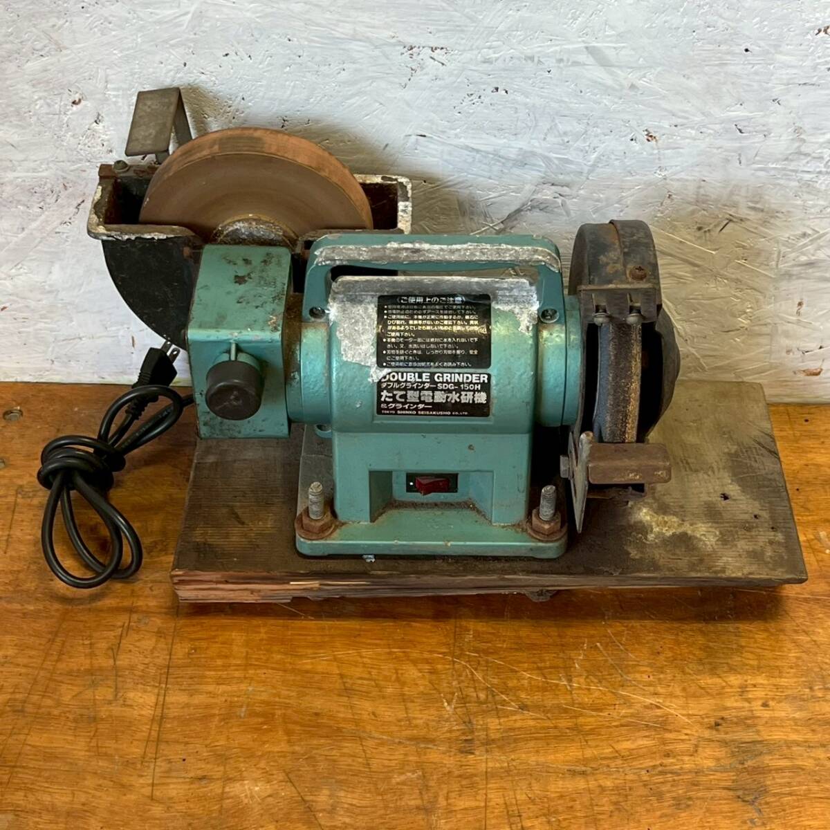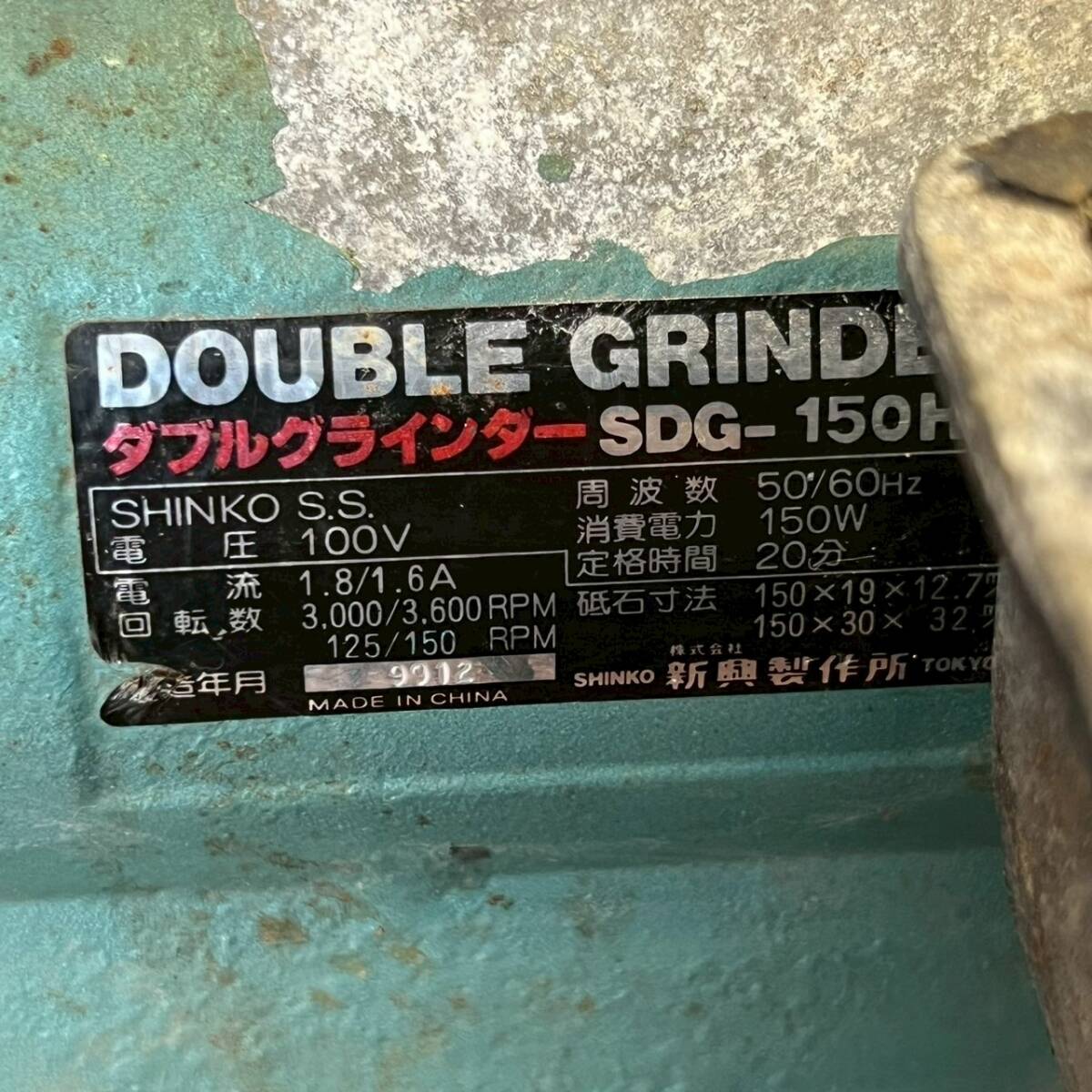 新興製作所 ダブルグラインダー SDG-150H 縦型電動水研機 動作確認済 研磨 電動工具 100V 有線タイプ 切削工具 グラインダー Y1907