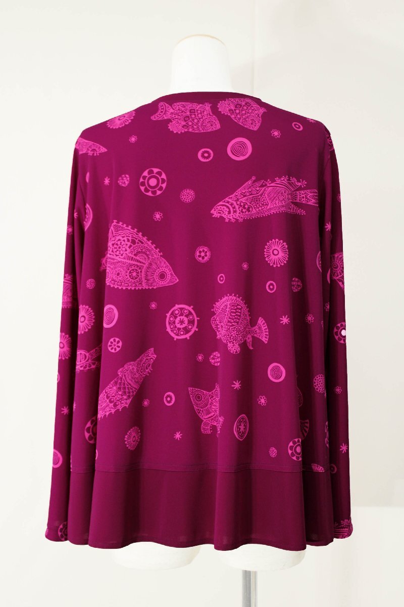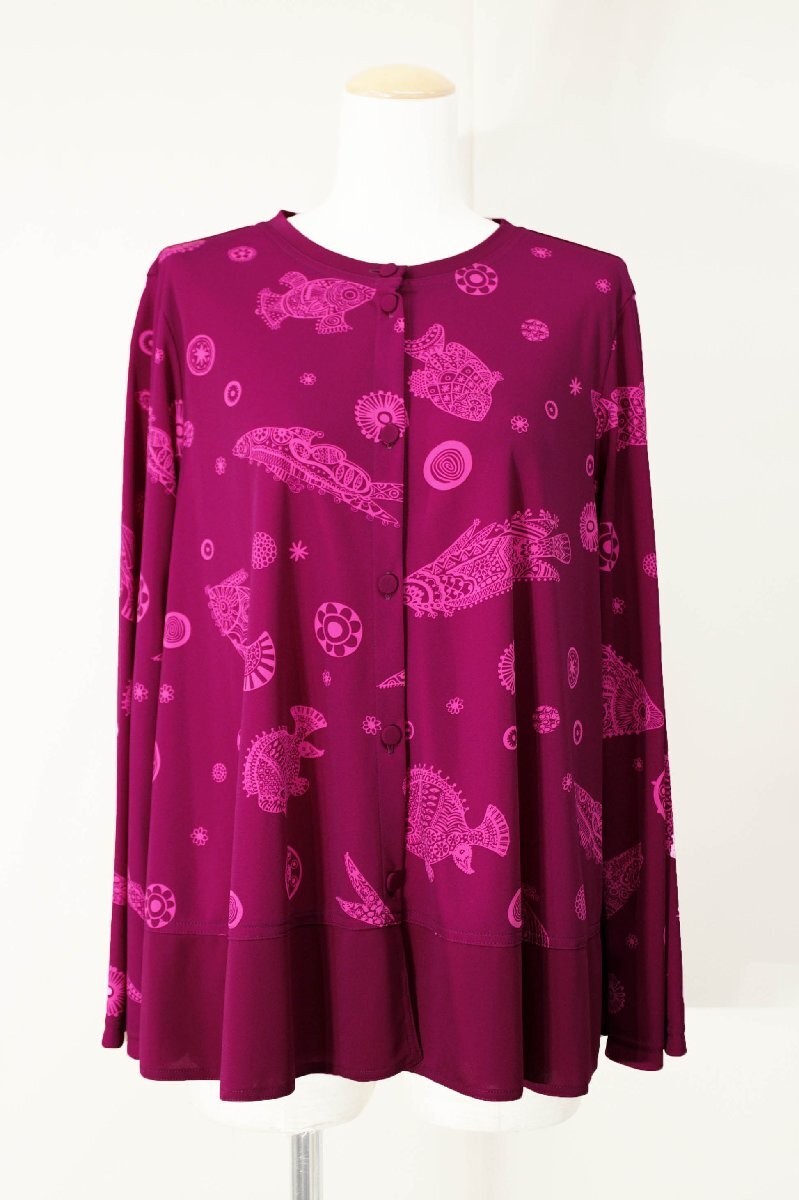 ★未使用★TOKUKO 1erVOLトクコ/魚柄プリント長袖ジャージーカーディガン:9/赤紫系yx210