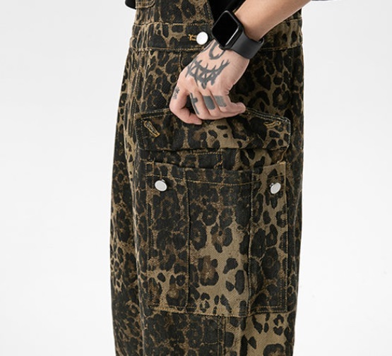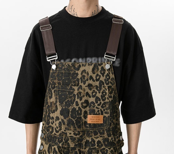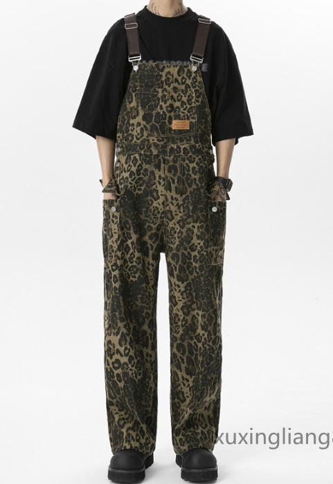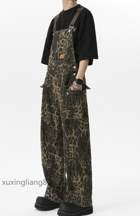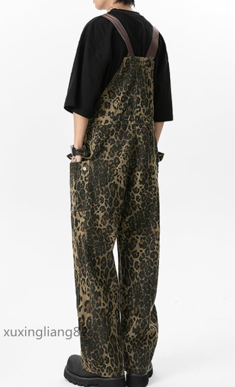 新販売 アメカジ オーバーオール サロペット メンズ つなぎ オールインワン 紳士 ワークパンツ 豹柄 前開なし ゆったり XLサイズ