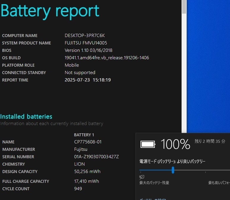 バッテリー 満タン後最大残量(実際の稼働を保証するものではありません)
