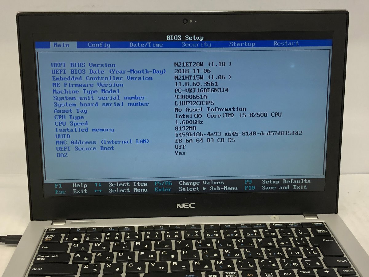 ジャンク/ NEC PC-VKT16BEGN3J4 Intel Core i5-8250U メモリ8.19GB ストレージ無し 【K18548】