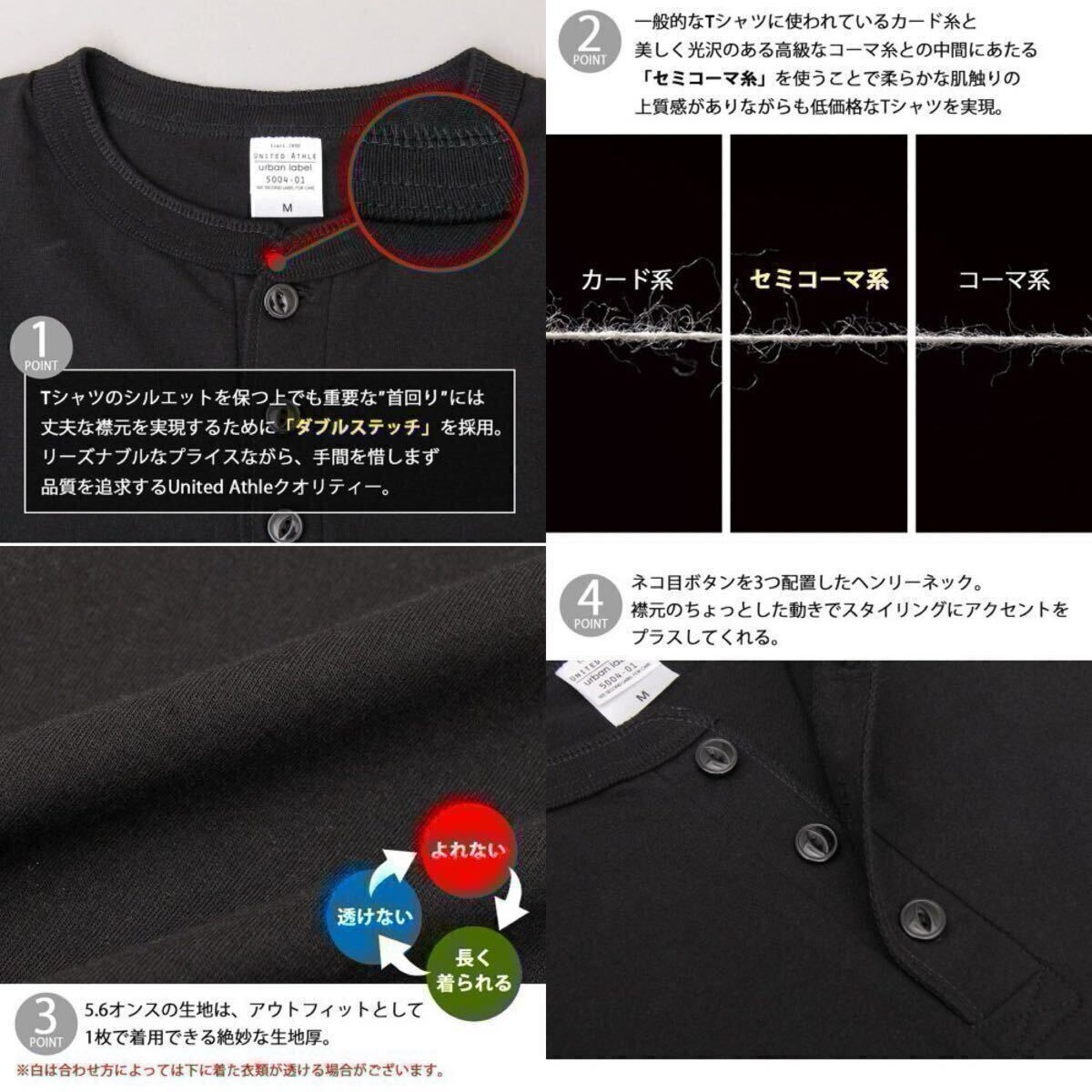 5.6oz ヘンリーネック 無地 半袖Tシャツ