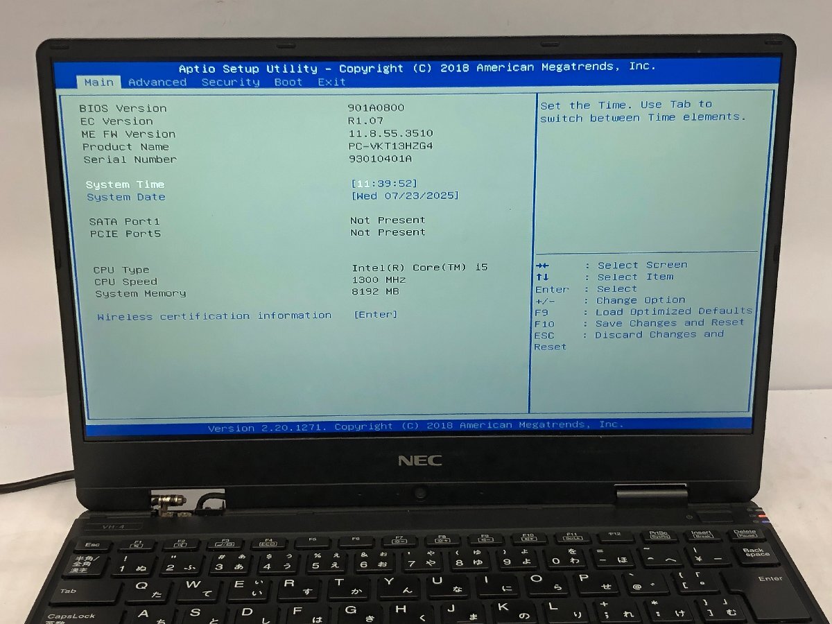 ジャンク/ NEC PC-VKT13HZG4 Intel Core i5-8200Y メモリ8.19GB ストレージ無し 【K18546】