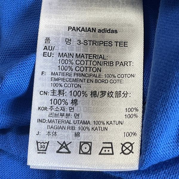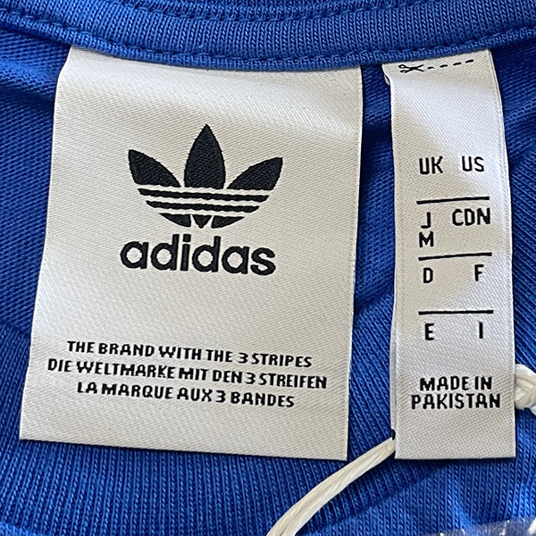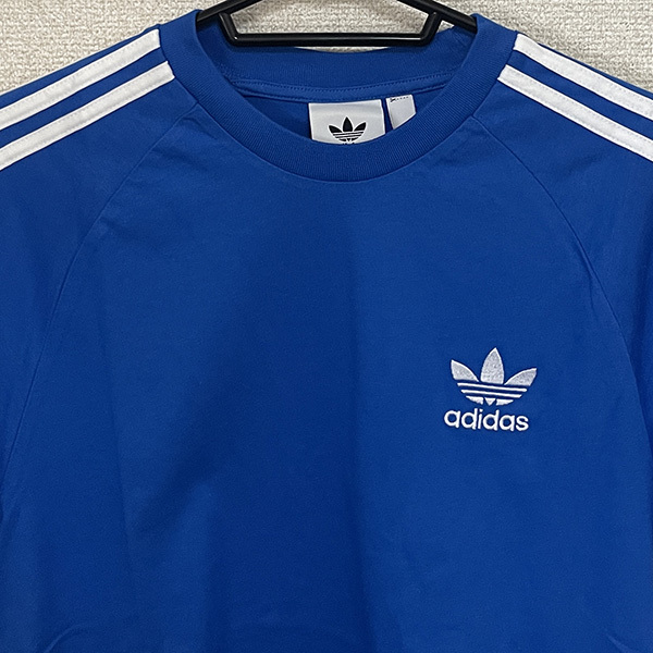 アディダスオリジナルスのTシャツです。カラーはブルーです。素材はコットン100%、表記サイズはM 実寸 着丈68cm 身幅49cm 裄丈46cm(素人採寸ですのでご了承ください)。タグ付き新品未使用です。送料無料(メール便発送)にいたしますのでどうぞよろしくおねがいします。