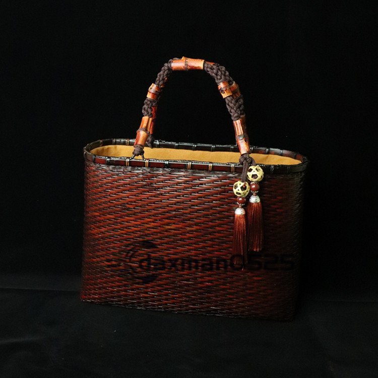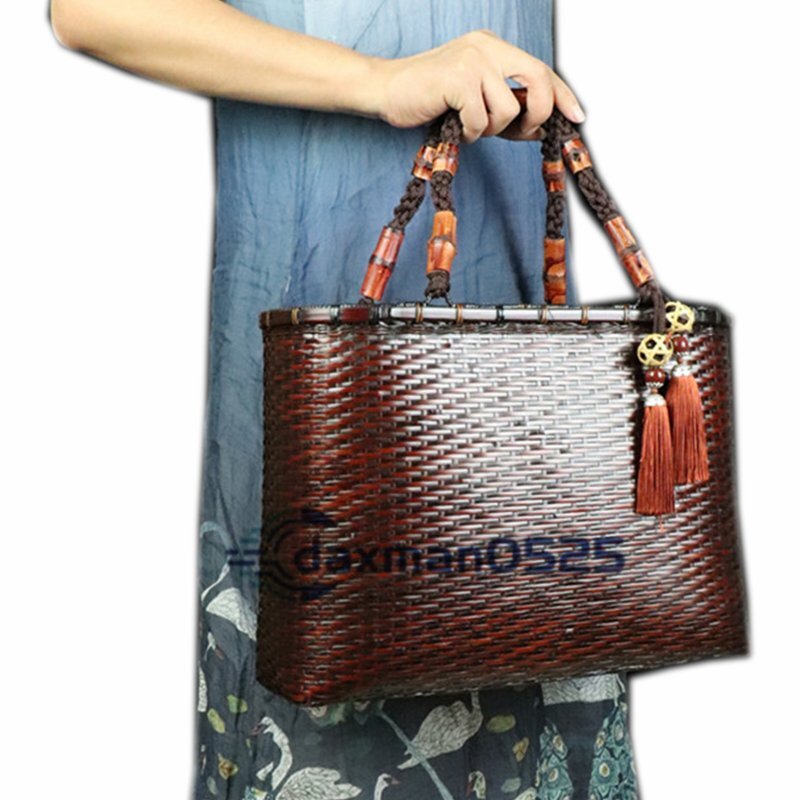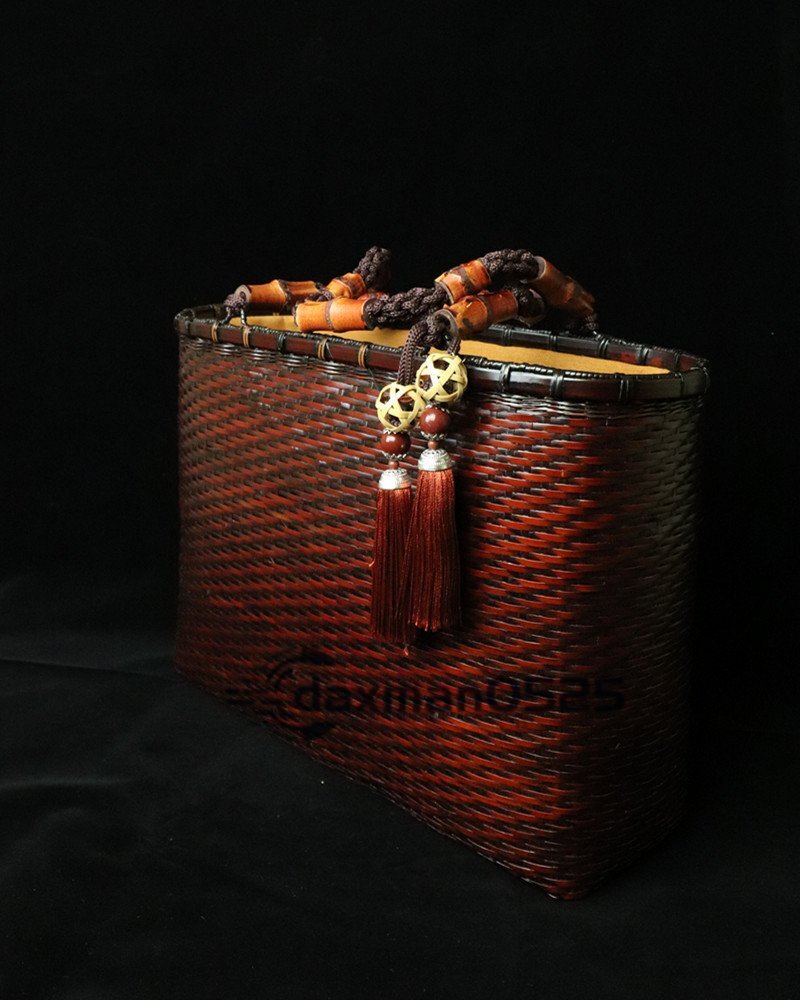 人気新品 バスケット 収納かご おしゃれ竹籠 編み 取っ手 持ち手  手作りトートバスケット 自然の良品 花火着物かご