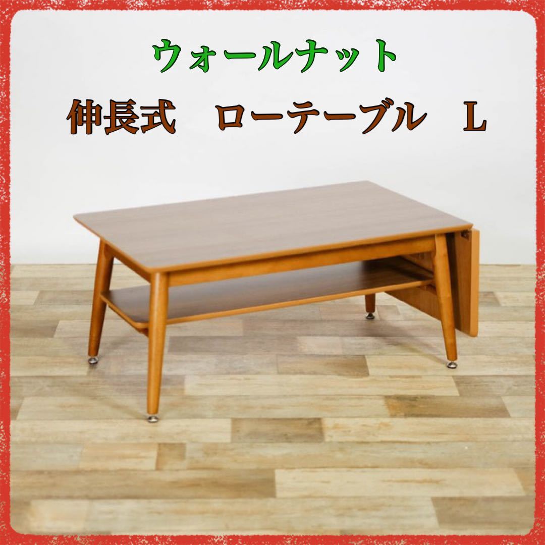 新品 ウォールナット 伸長式 ローテーブル L 北欧 折り畳み 伸縮 木製 センターテーブル 机 テーブル 収納 棚 ちゃぶ台 天然木 リビング