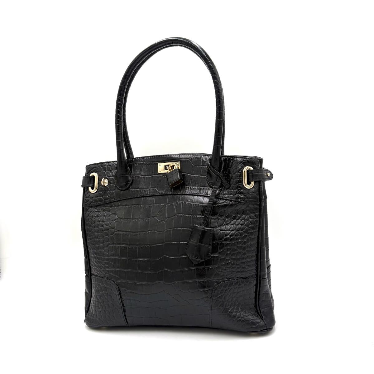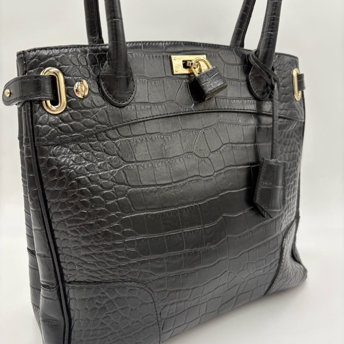 K■ クロコ型押しデザイン '皇室御用達' den HAMANO 傳濱野 デンハマノ LEATHER ハンドバッグ 手提げ 肩掛け鞄 トートバッグ 婦人鞄 カバン