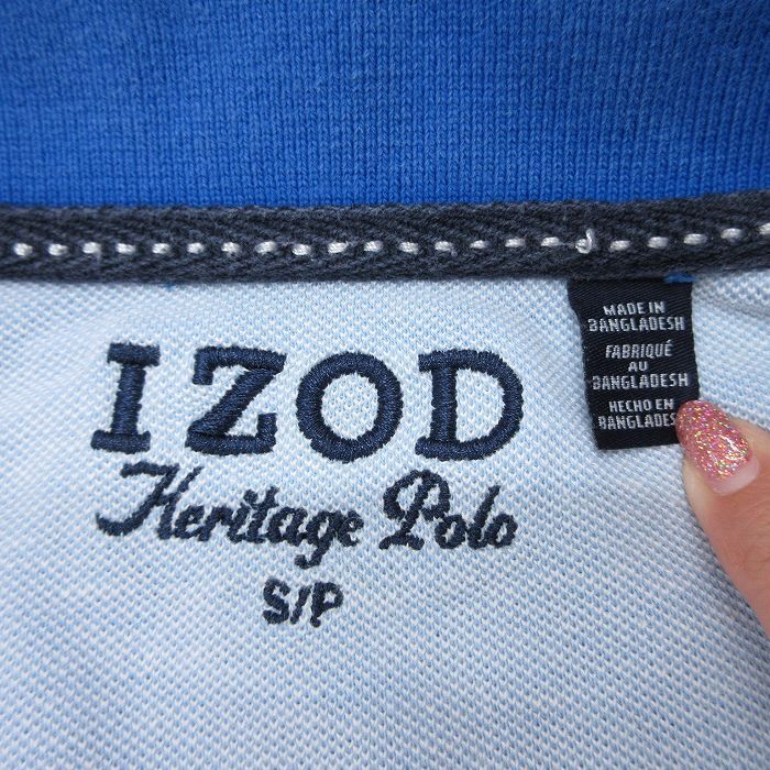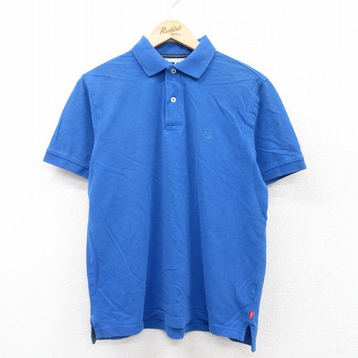 【商品名】 L★古着 IZOD 半袖 ポロ シャツ メンズ ワンポイントロゴ 鹿の子 青