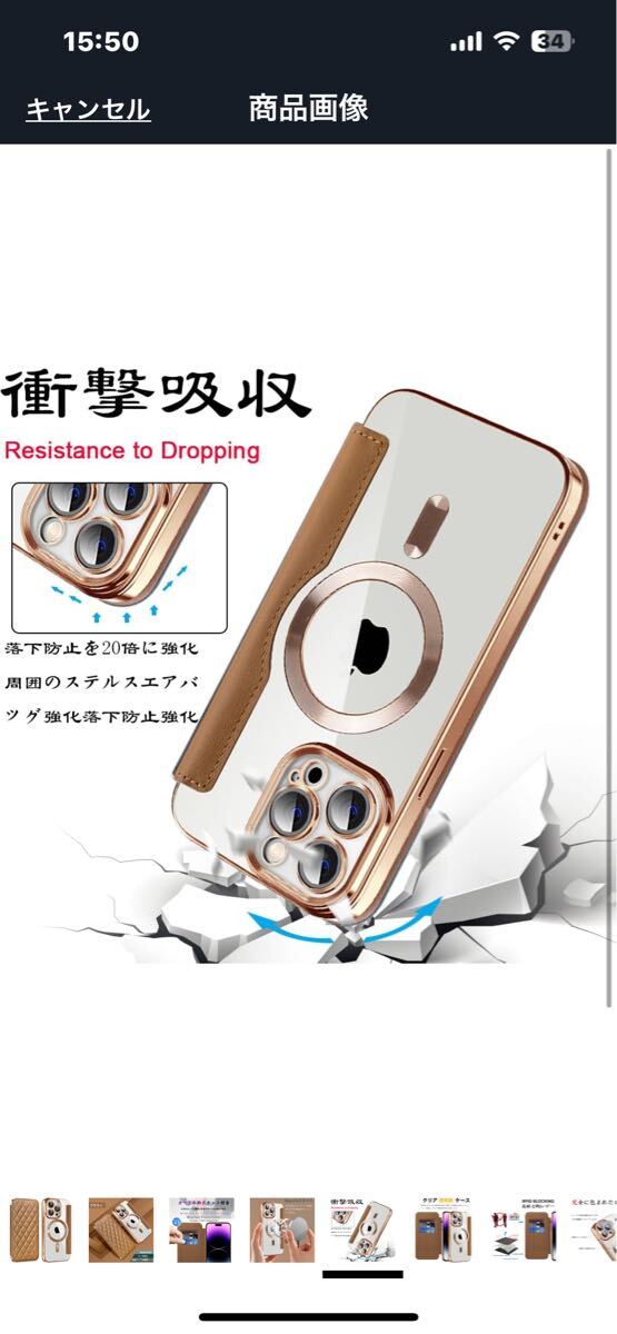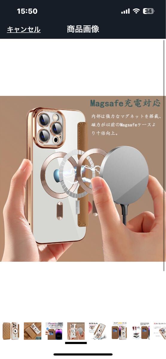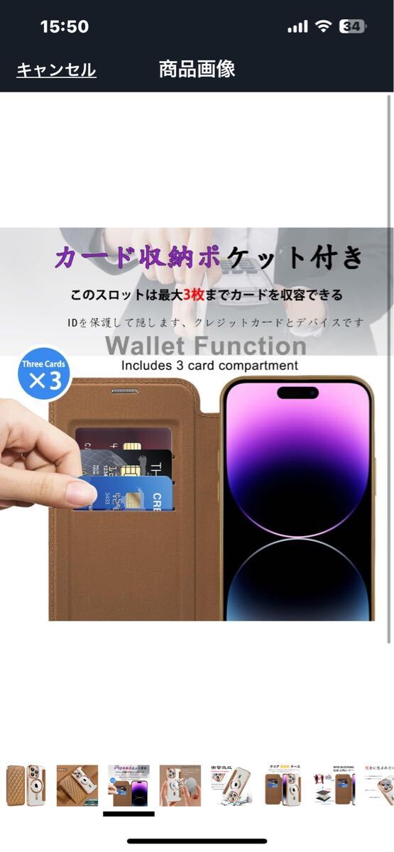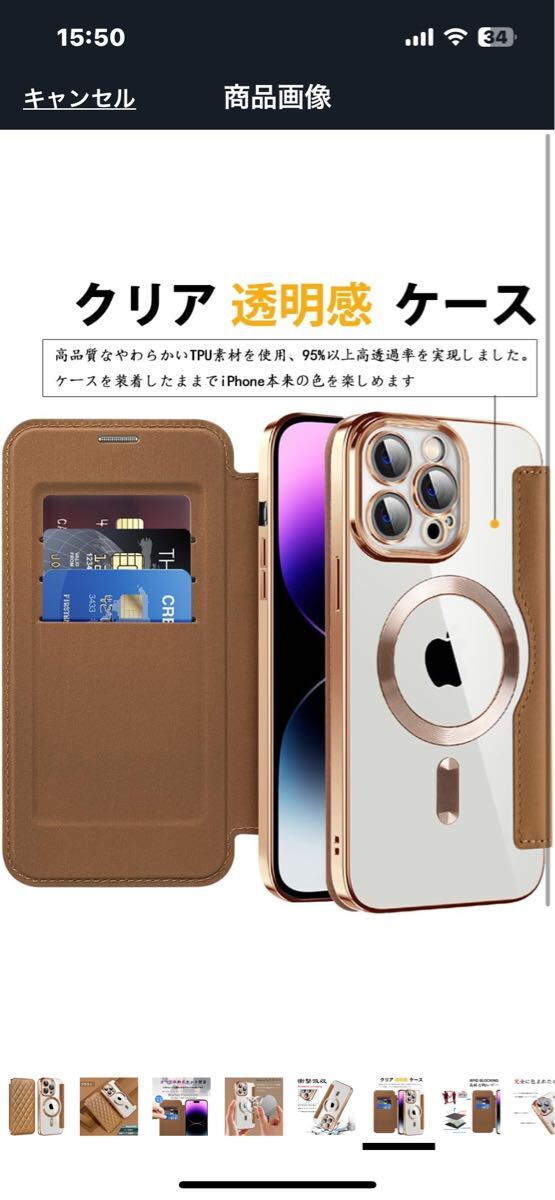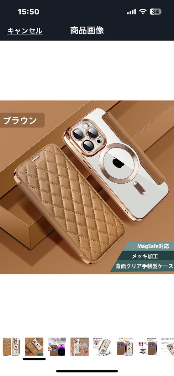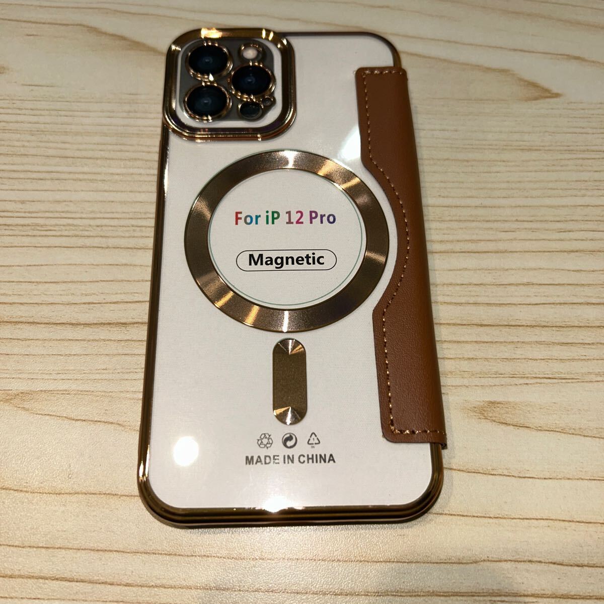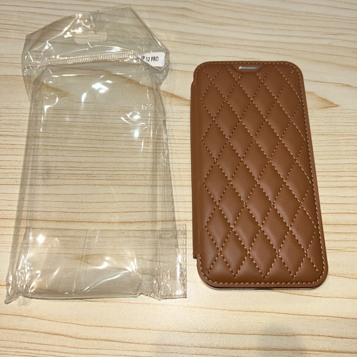 f483 iPhone 12 Pro 用 ケース 手帳型 クリア Magsafe対応 キルティング 高級なPUレザー スマホケース カード収納 格子柄 (ブラウン)