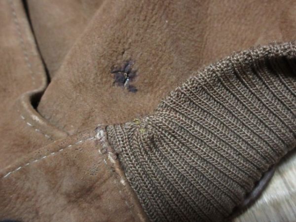 ■画像6枚目参照で、フロント左側の裾の方に、革めくれリペアあり、リブにリペアあります。