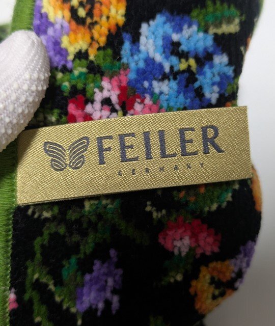 ■フェイラー タオルハンカチ シュニール織 黒地 花柄 FEILER■