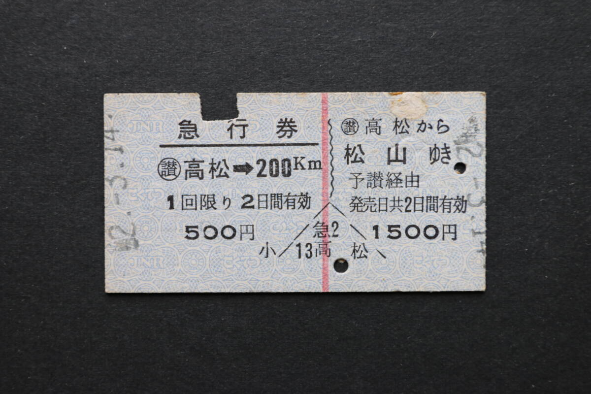 急行券 乗車券 (讃)高松→200Km (讃)高松から 松山ゆき