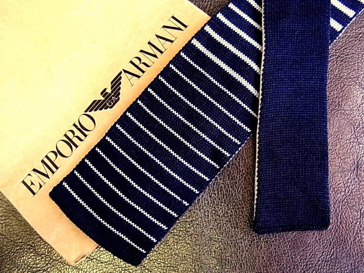 ●bv2767●良品●【ニットタイ】エンポリオ アルマーニ 最高級 黒タグ【両面リバーシブル】ネクタイ★●