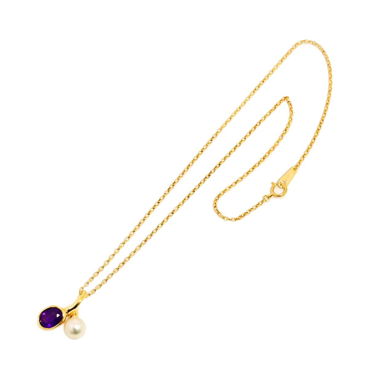 材質/刻印 | 18金イエローゴールド アコヤ真珠 7.5mm アメジスト 0.94ct チェーン(刻印K18) トップ(刻印K18、0.94Ct) |