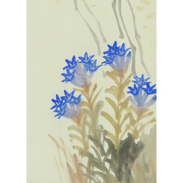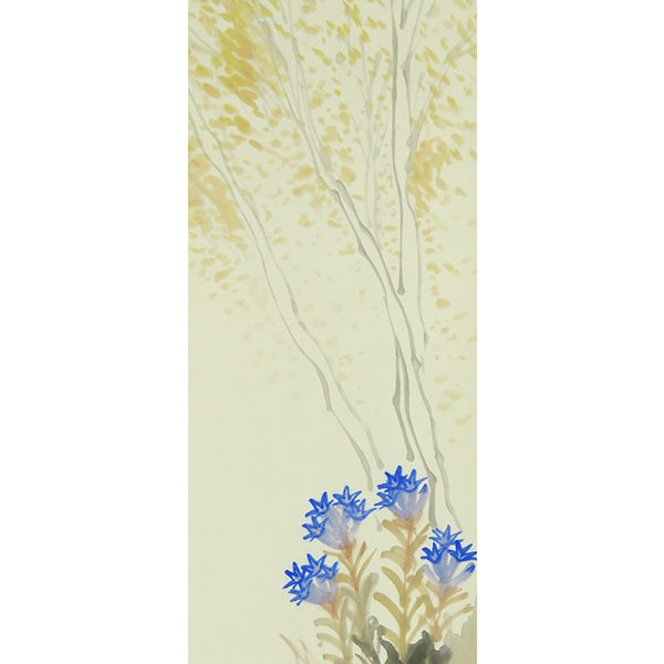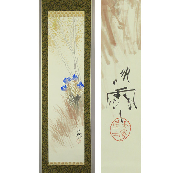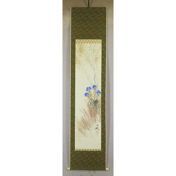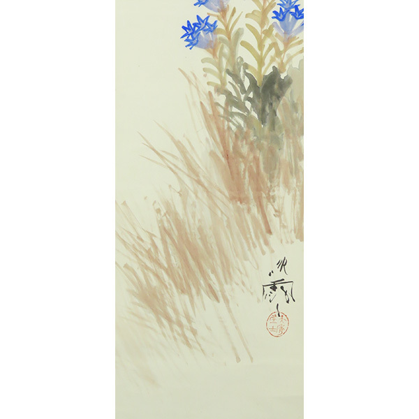 B-4554【真作】丸山晩霞 肉筆紙本淡彩 桔梗図 掛軸/洋画家 長野 師・本多錦吉郎 彰技堂 太平洋画会 日本水彩画会研究所 書画