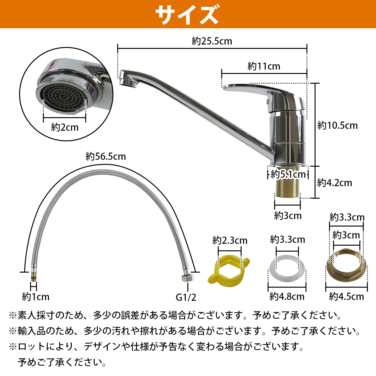 蛇口:長さ 25.5cm / 高さ 10.5cm(設置面からレバーまで)