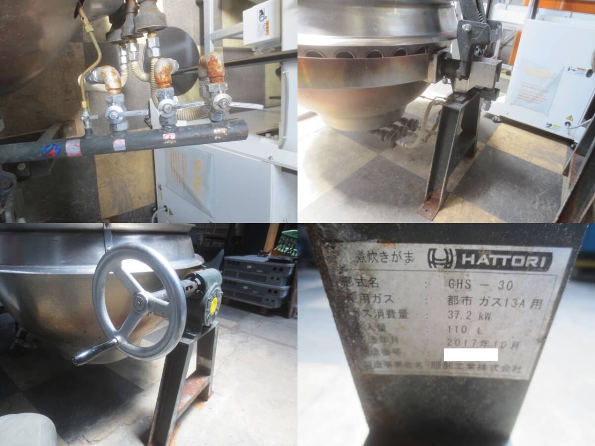 | ガス回転釜/都市ガス/13A/GHS-30/110L/440人分/2017年/ステンレス/服部工業/中古即決品/★ | |