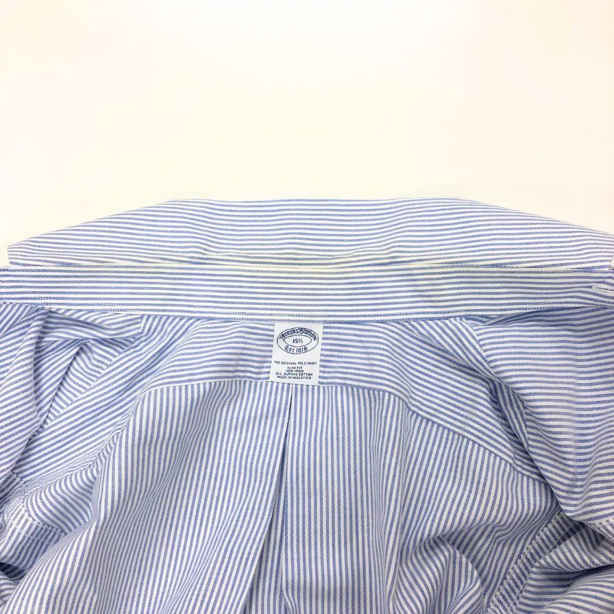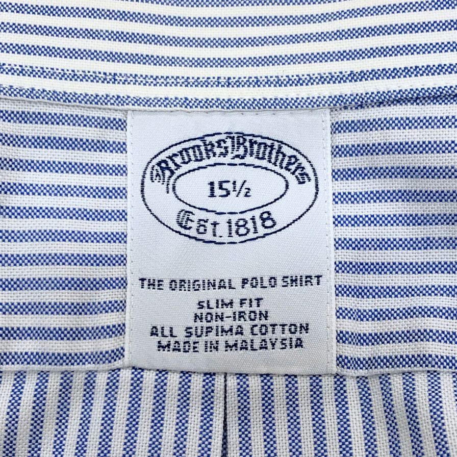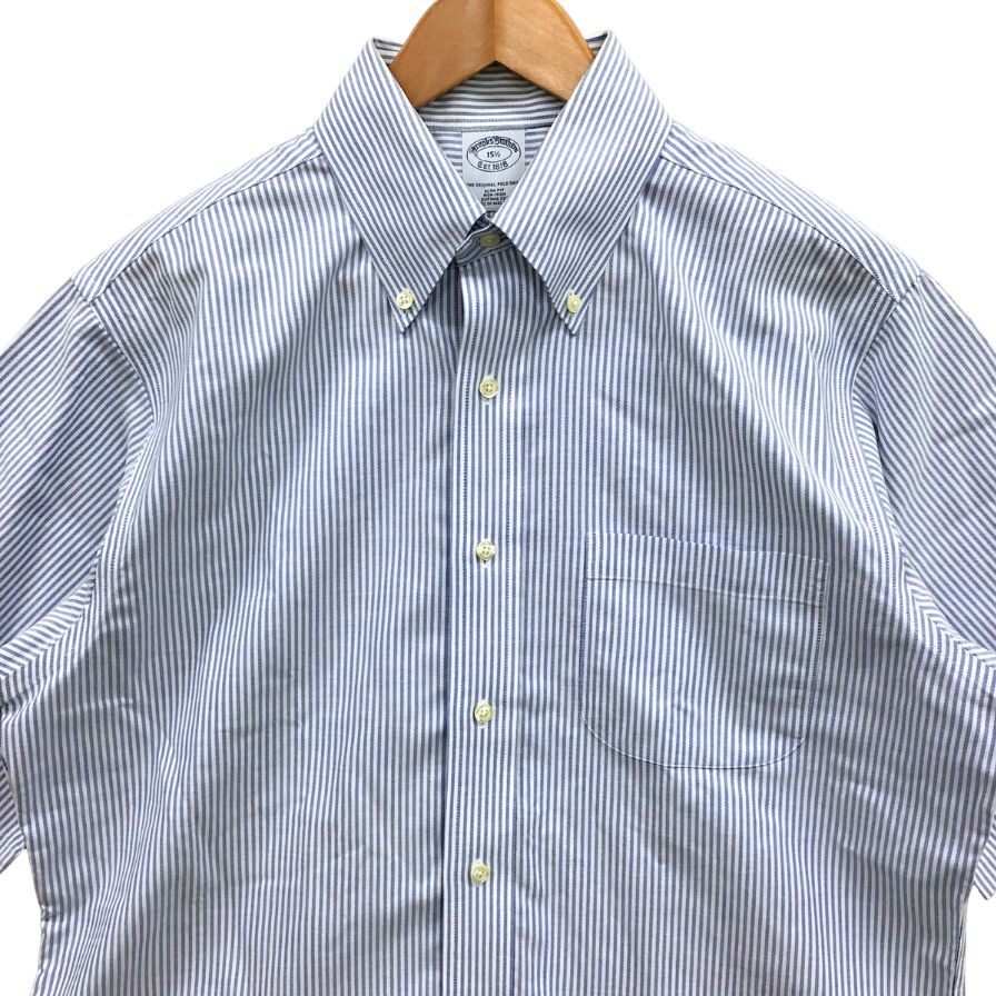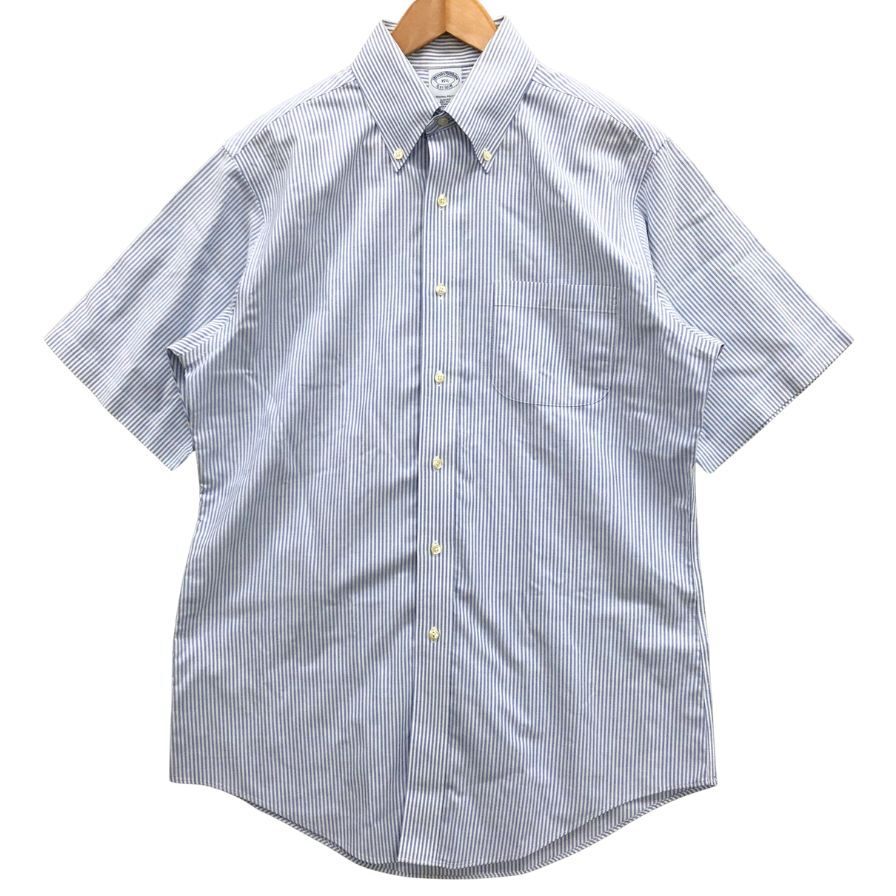 中古◆シャツ ブルックスブラザーズ シャツ 半袖 ボタンダウン ストライプ 綿 メンズ ブルー サイズ15.5 Brooks Brothers 【AFB25】