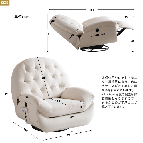• 【調整可能なリクライニング機能】背もたれは105°-160°調整可能で、最適な角度にリクライニングできます。160°まで調整する場合は、腿部がゆっくり放置できます。身長150~175の方が横になるのは余裕です。そして、ソファーは前後揺れるだけでなく、270°回転もでき、リラックスしたいときや作業をしたいときに便利と楽をもたらします。