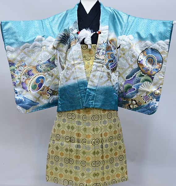 | 項目 | 五歳羽織袴フルセット ・羽織 ・着物 ・長襦袢 ・袴 ・草履 ・角帯 ・扇子 ・短剣 ・羽織紐 ・お守り |