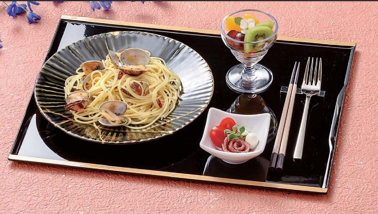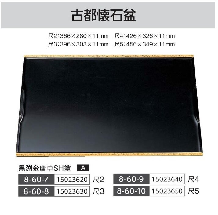 ☆古都懐石盆黒渕金唐草SH塗尺3(約396X303mm)50枚