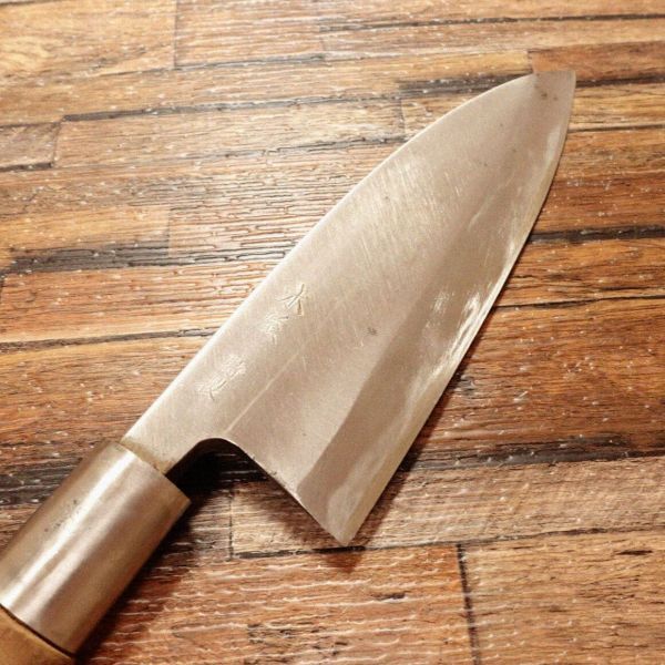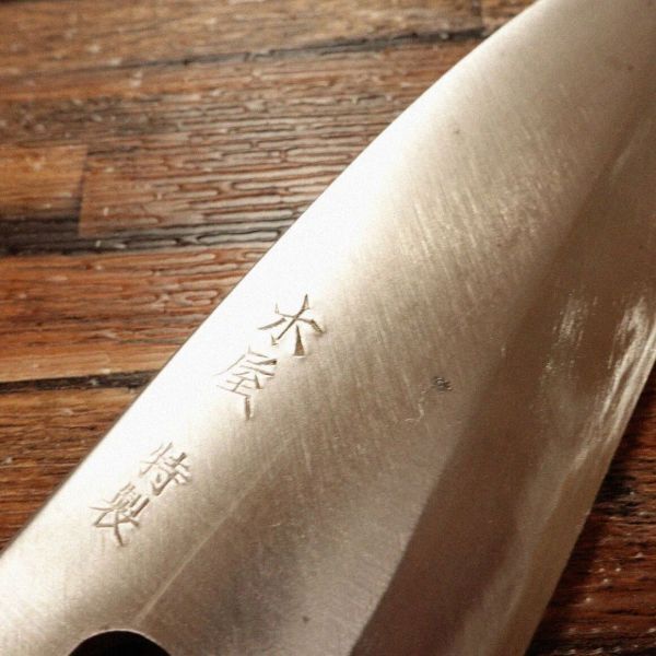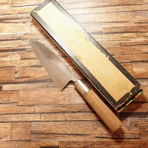 出刃包丁は、魚をさばく際に特化した和包丁で、丈夫な刃厚が特徴です。木屋ブランドの出刃包丁です。箱も一応残っておりましたのでお付けしております。箱はダメージがありますのでおまけ程度にお考え下さい。