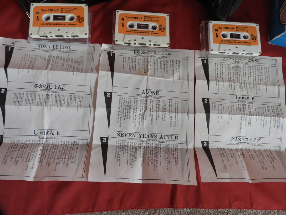 カセットテープ3本全曲確認してません。 外箱及び、カセットテープ付属の歌詞カードは、破損、汚れなどがあります。