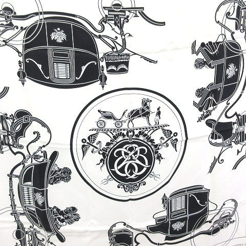 エルメス HERMES カレ80 スカーフ EX-LIBRIS フリンジ エクスリブリス 馬車 シルク100 アイボリー レディース