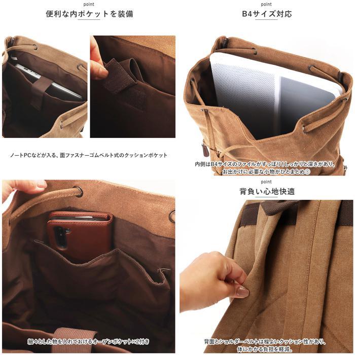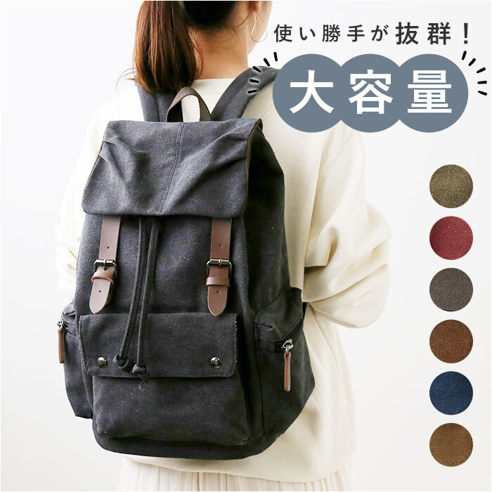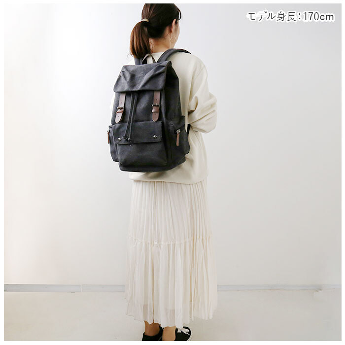 商品説明 | ・・お出かけや旅行で活躍!大容量タイプのリュックが新登場。 ・【ダブル仕様の開口部】 ・メインルーム開口部は、キュッと絞るドローコードデザイン&マグネットベルト付きフラップでプライバシー面も安心!フラップのベルトは3段階調節可能。 ・【B4サイズ対応】 ・内側はB4サイズのファイルがすっぽり!しっかりと深さがあり、お出かけに必要な小物がひとまとめ◎ ・【便利な内ポケットを装備】 ・ノートPCなどが入る、面ファスナーゴムベルト式のクッションポケット、細々とした物を入れておけるオープンポケット×2付き。 ・【小物の整理整頓がラクラク】 ・前面と両サイドに3つのポケットを配置。小物を仕分けて、サッと取り出せるのが嬉しい◎ ・【背負い心地快適】 ・背面とショルダーベルトは程よいクッション性があり、体にかかる負担を軽減。 ・【異素材ミックス】 ・ナチュラルなキャンバス生地と、レザー風素材の組み合わせがおしゃれ☆ ・【ポケット仕様】 ・メインルーム:面ファスナーゴムベルト式クッションポケット×1、オープンポケット×2 ・前面:マグネットポケット×1 ・サイド:ファスナーポケット×2 |