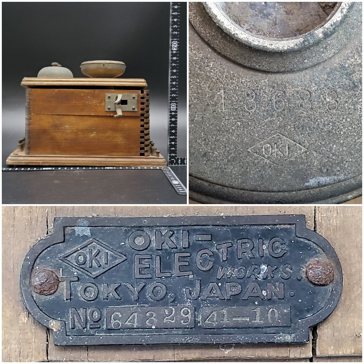 【宝蔵】アンティーク雑貨 手回し電話機 約27㎝ 4.7㎏ 壁掛け 沖電気 OKI ELECTRIC レトロ 受話器なし ジャンク品