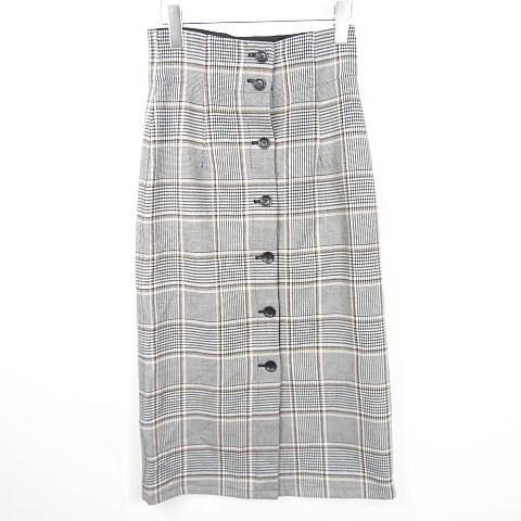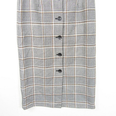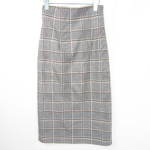 ナノユニバース nano universe ナノ ベース NANO BASE タイト ロング スカート ストレッチ レーヨン 36 グレー チェック kz12266 レディース