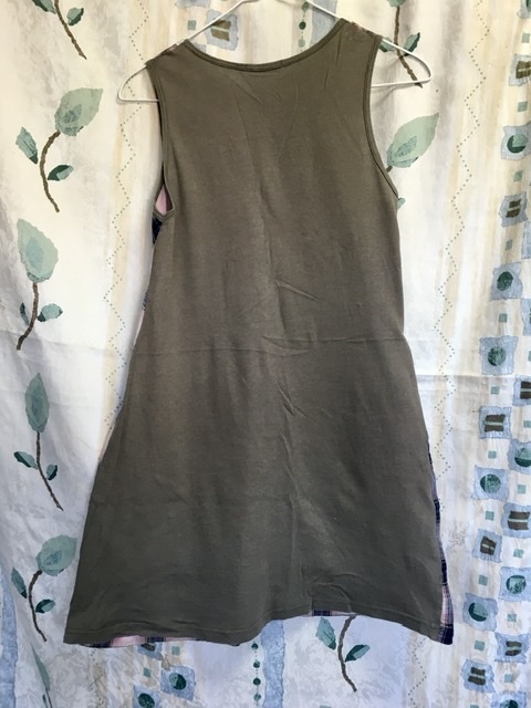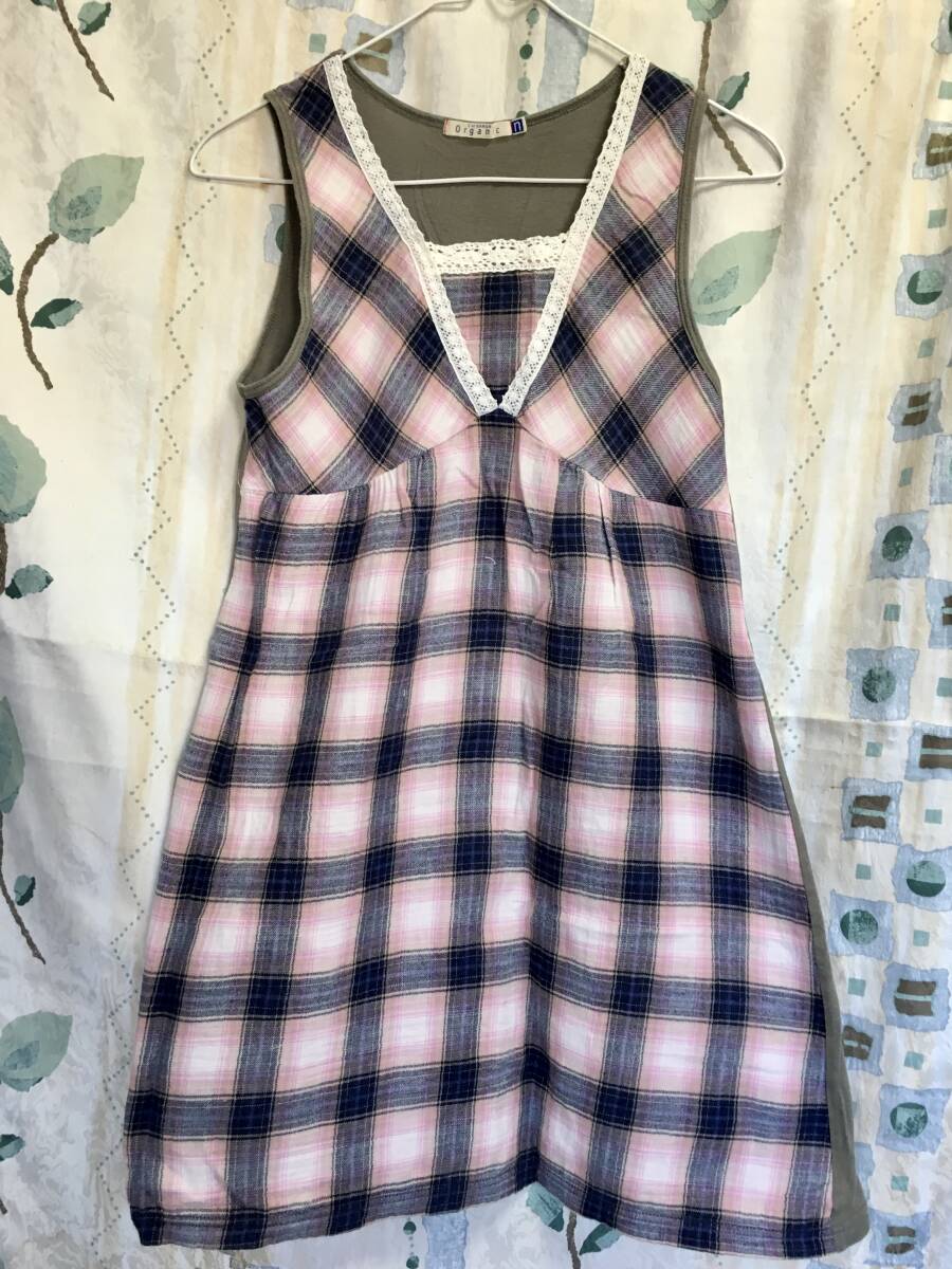 【商品の説明】UESDのノースリーブチュニック。前ピンク系チェック、背中茶色。サイズタグ無くM位かと。
