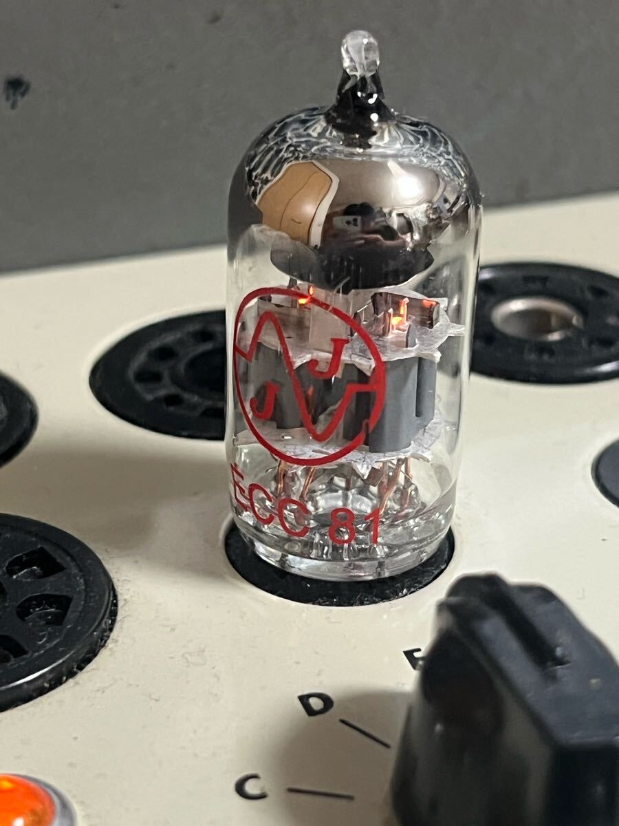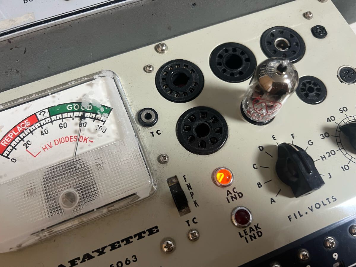 手持ちの真空管試験機(エミッション測定)で全数検査し
