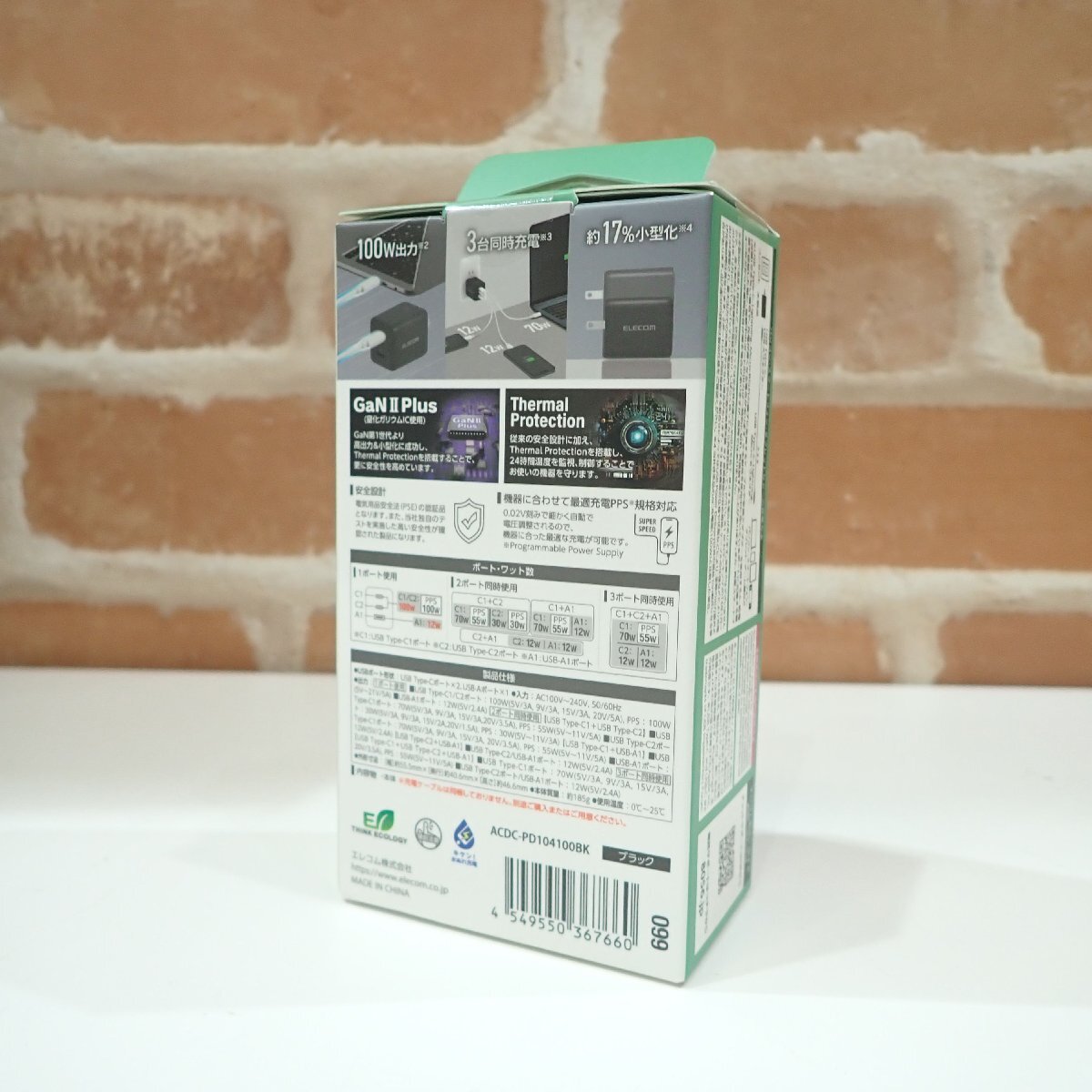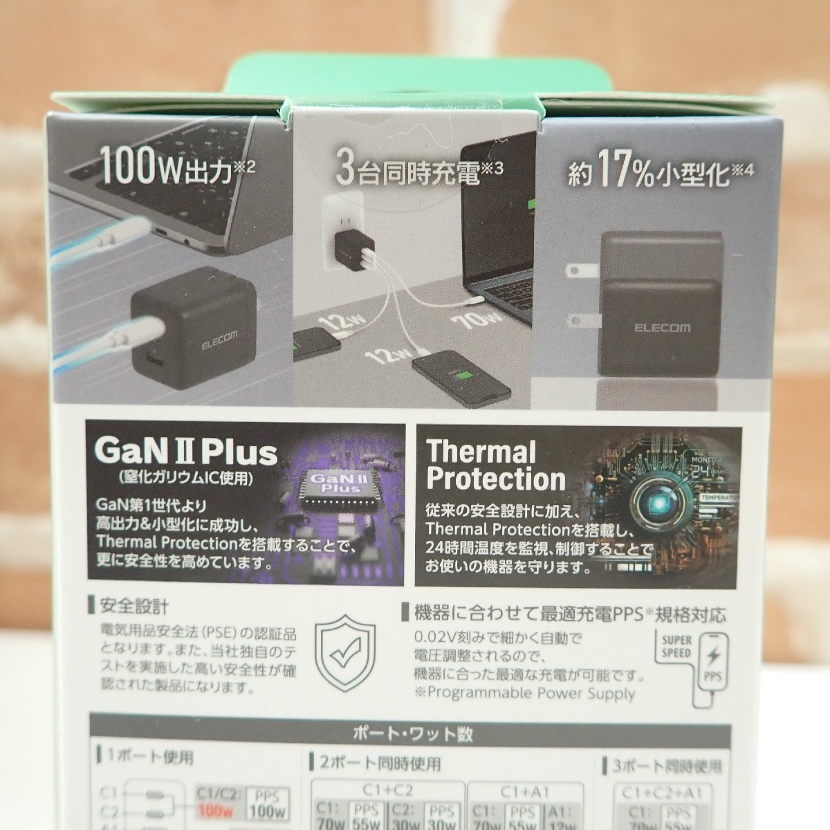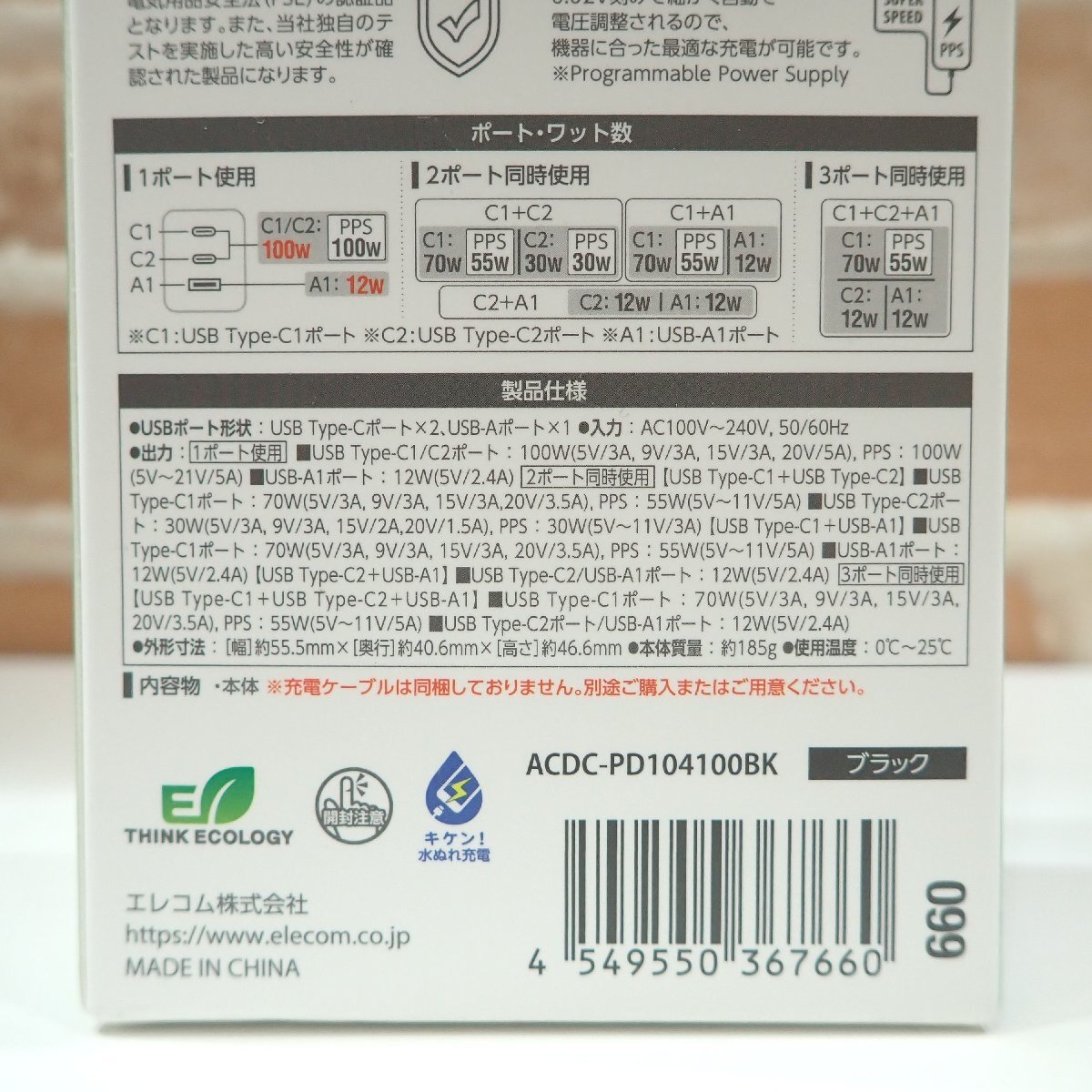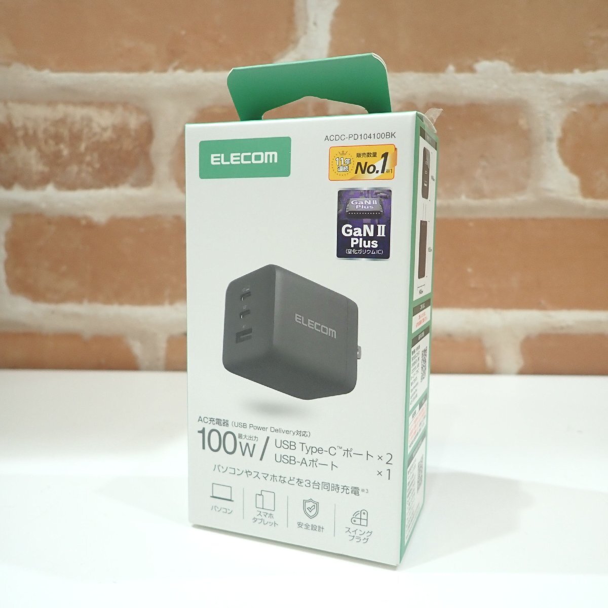 新品未開封 ELECOM エレコム USB Powet Delivery 100W PD急速充電器 (C×2 A×1) ACDC-PD104100BK |