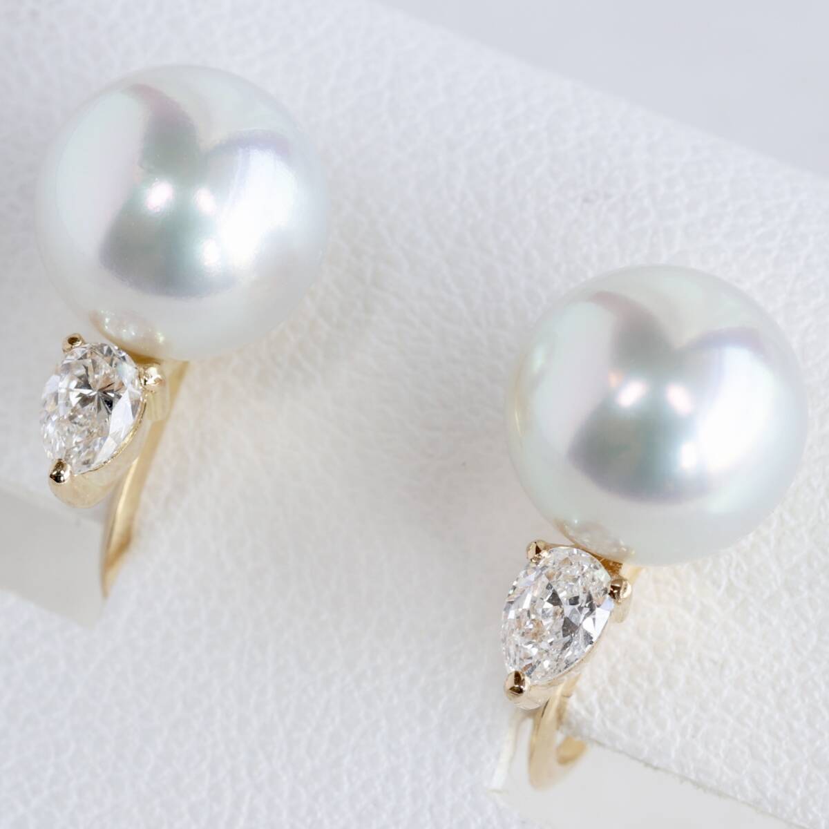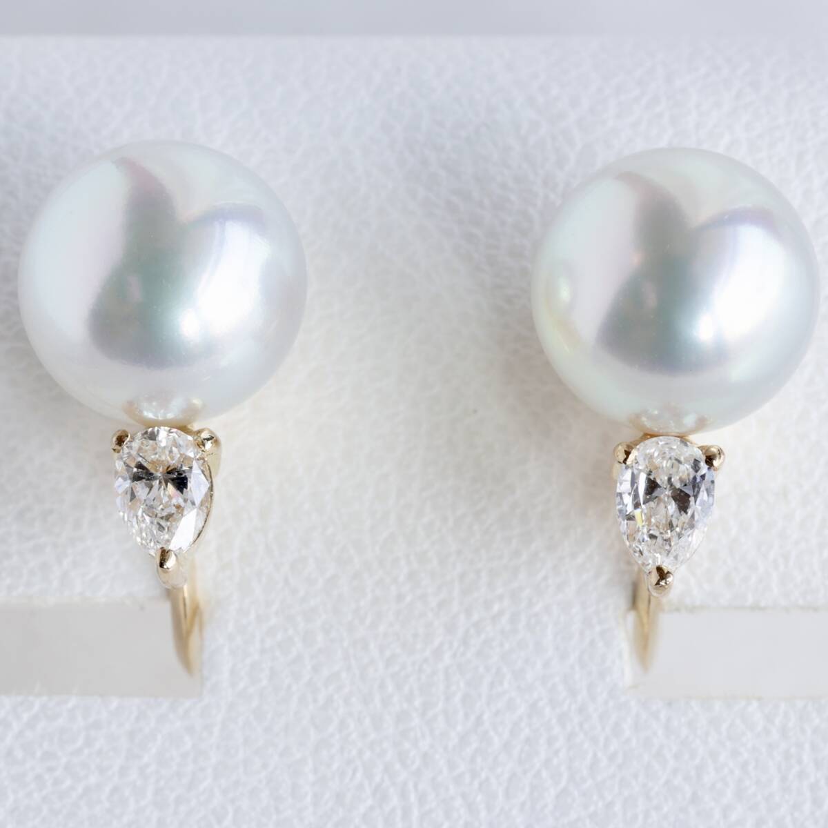 照り巻きの美しいラウンドフォルムのパールは8.8mmの大きさがあり、上質なペアシェイプカットのダイヤモンドが綺麗な輝きを添えています。
