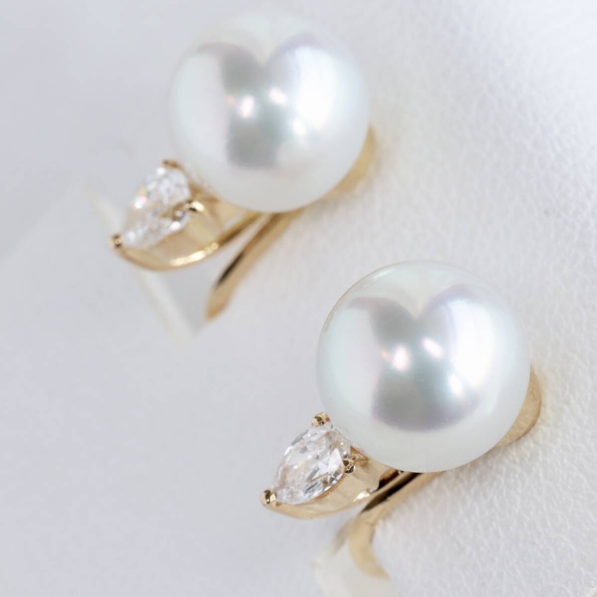 メーカー不明 K18 YG あこや真珠 8.8mm ダイヤモンド 0.15ct ×2 イヤリング パール 真珠