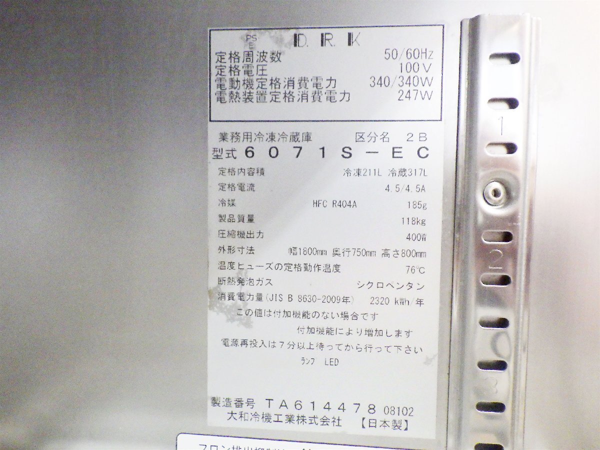 2022年製◆大和冷機◆台下冷凍冷蔵庫◆6071S-EC◆W1800*D750*H800◆単相100V◆業務用 島根