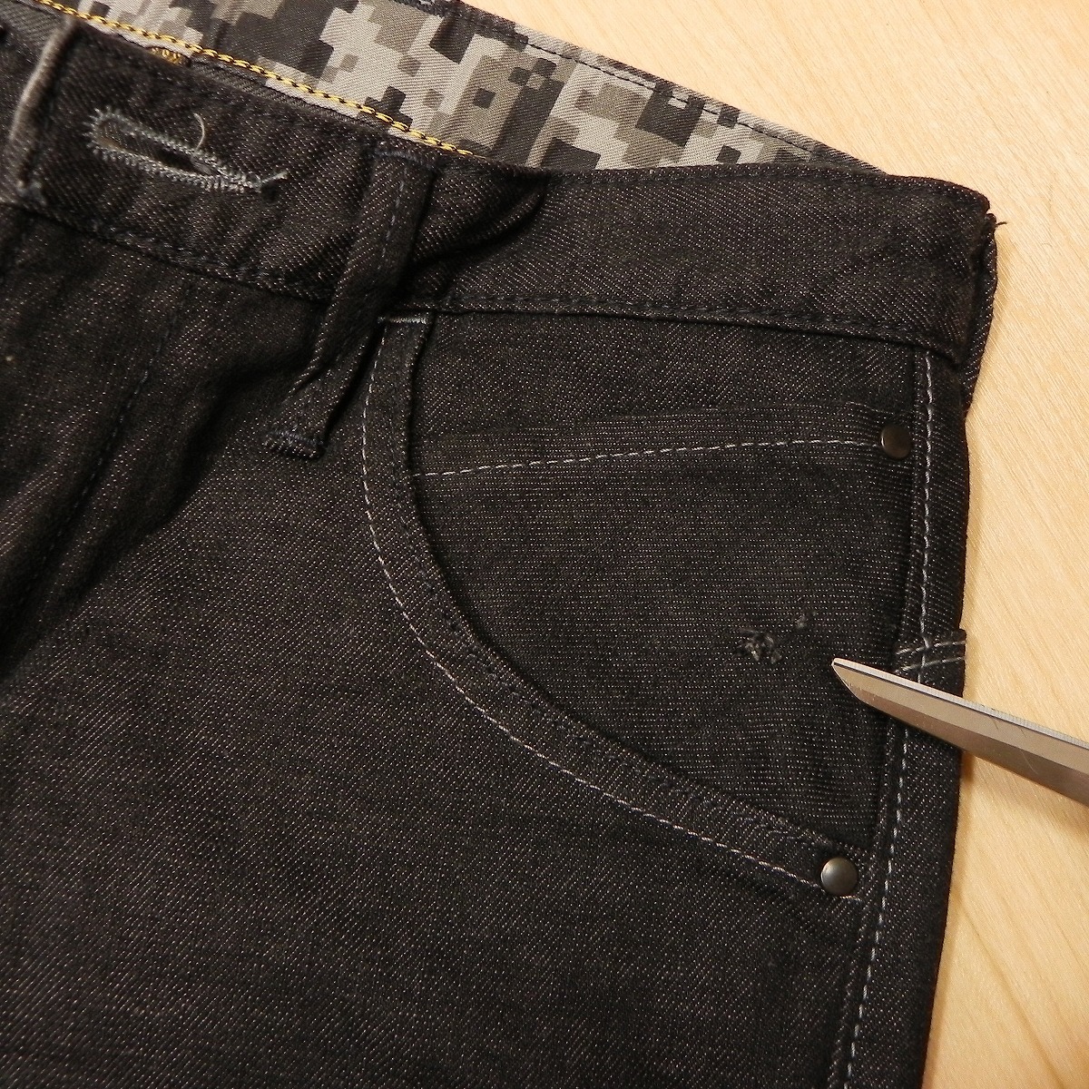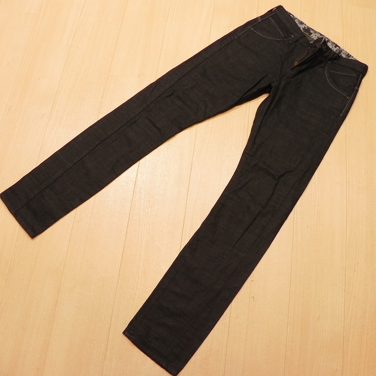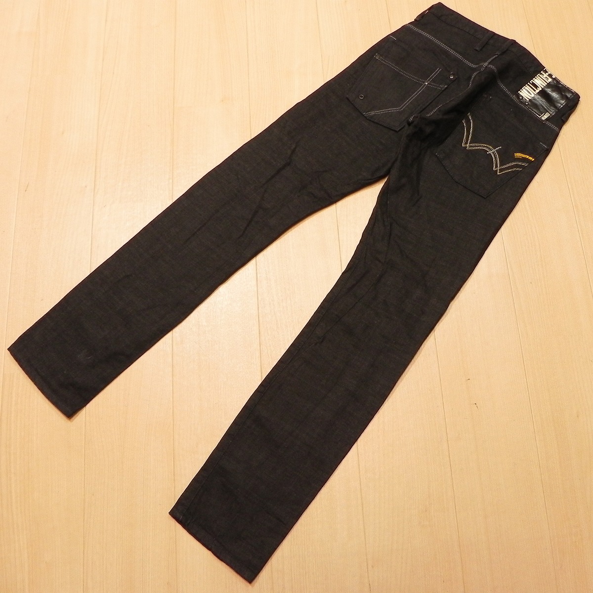 ●あくまでも古着のため、ノークレームノーリターンでお願いいたします。多少の使用感がございます。 写真2枚目のように左ポケットに小穴がございます。 ブラックジーンズに近い感じの生地だと思います。裾はオリジナルのチェーンステッチです。