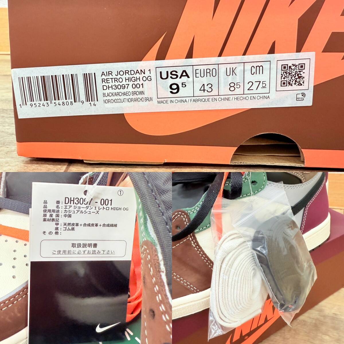 H2119*10 未使用 NIKE ナイキ AIR JORDAN 1 RETRO HIGH OG エアジョーダン1レトロハイ DH3097-001 27.5㎝ スニーカー 箱付き |