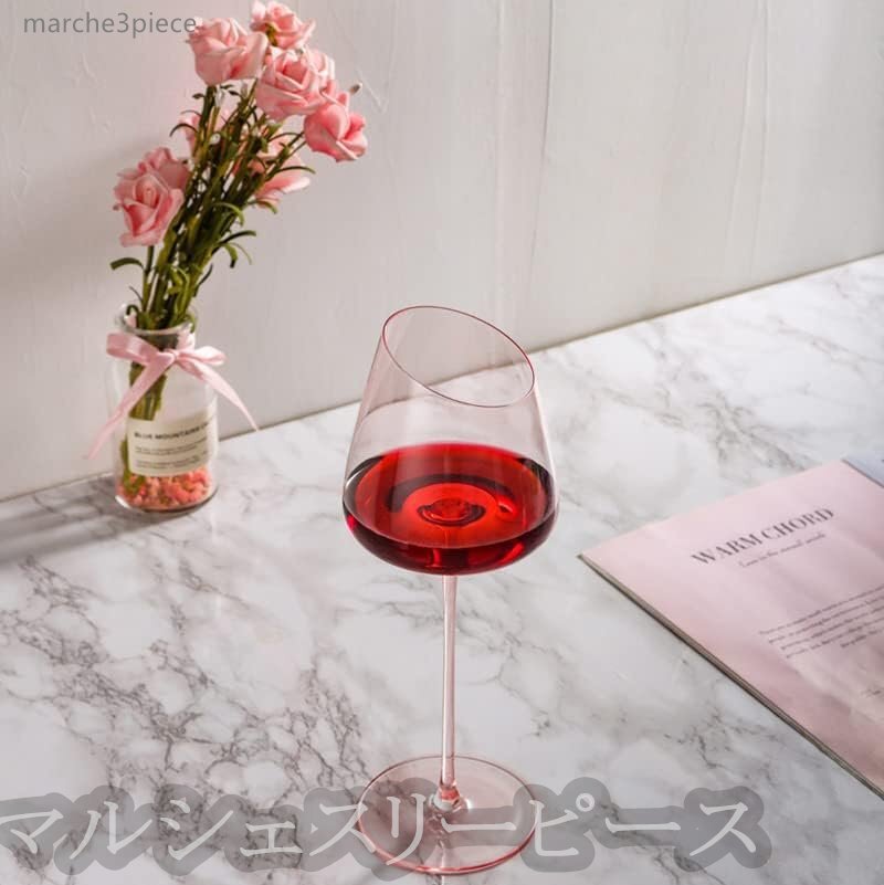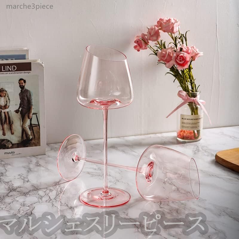 2個セット ブルゴーニュ ワイングラス スラントカット カラークリスタル ピンク
