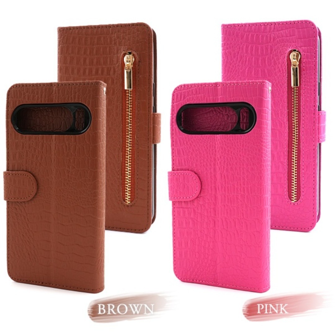 クロコダイルレザーデザインの手帳型ケース。