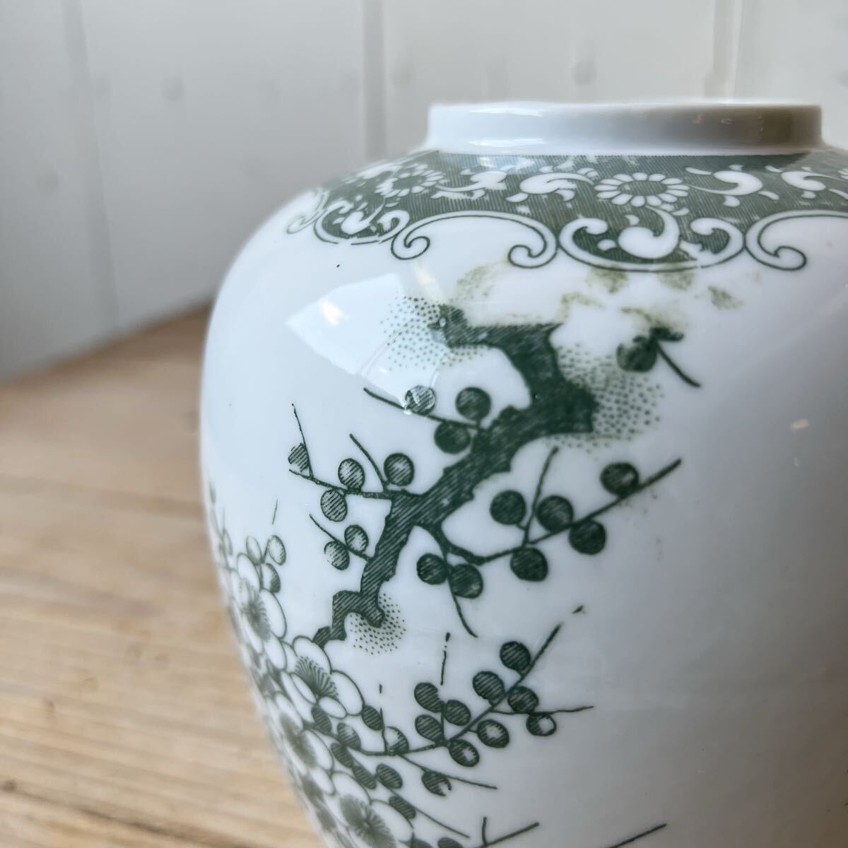 梅 絵柄 渋い緑色 花器 花瓶 壺 デットストック 白磁 銅板 陶器 検: 鳥 磁器 フラワーベース 飾り 什器 インテリア レトロ ビンテージ