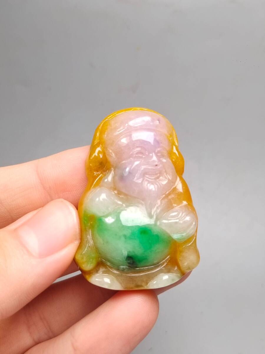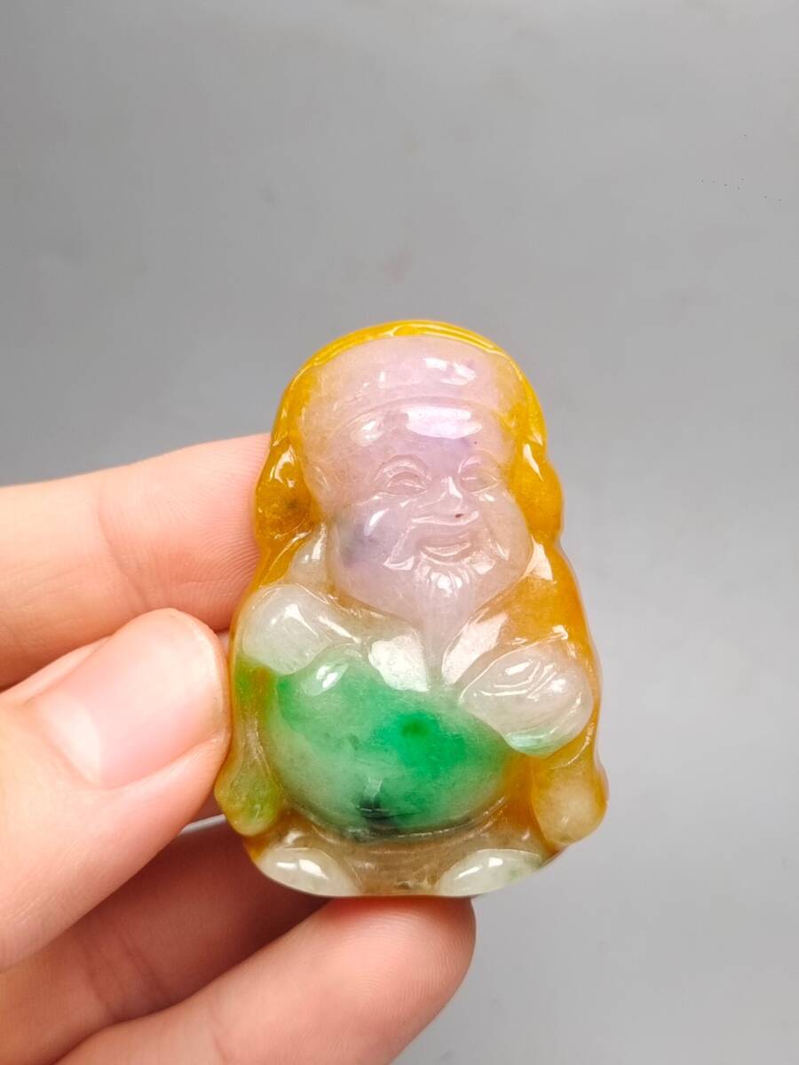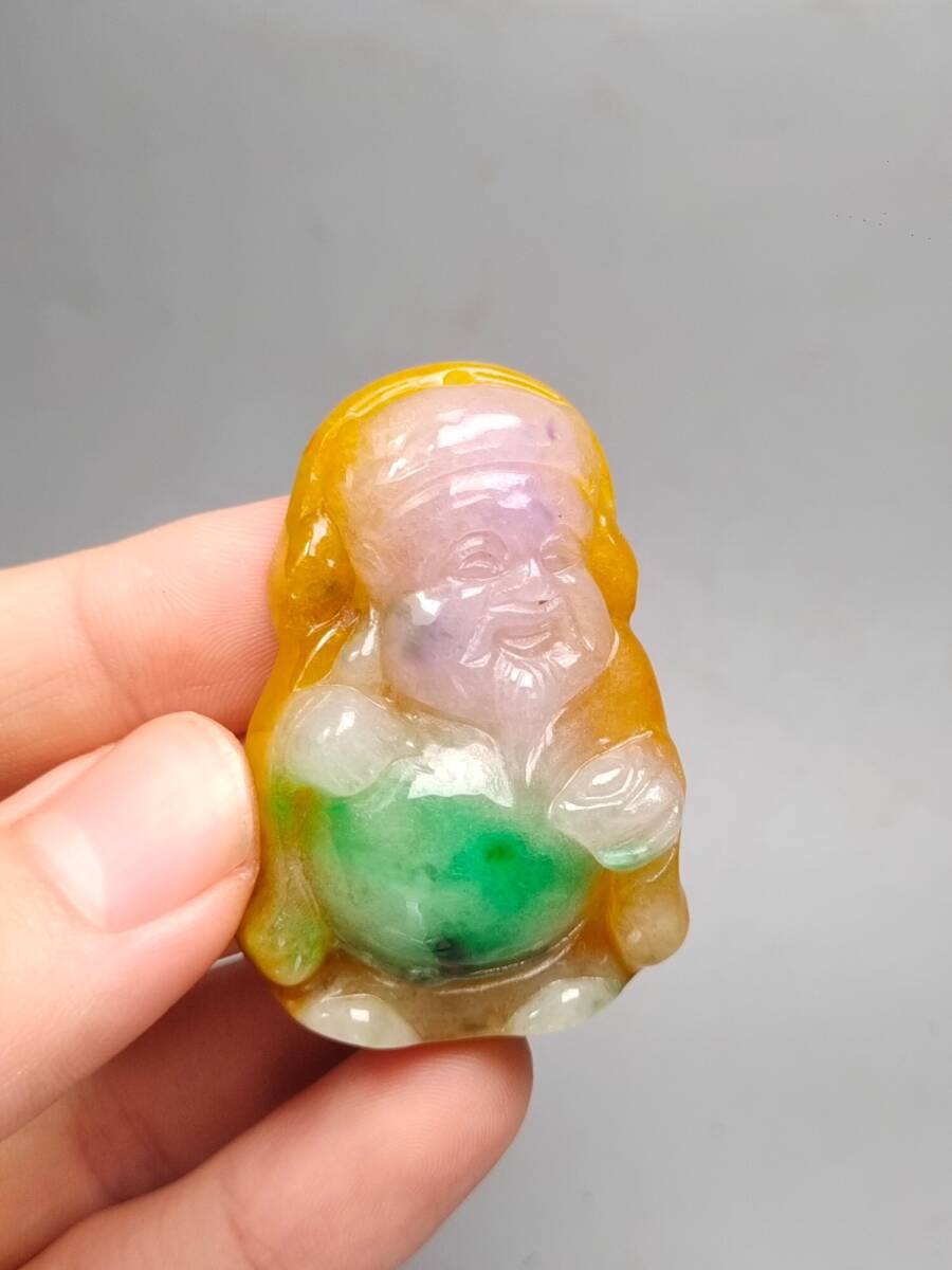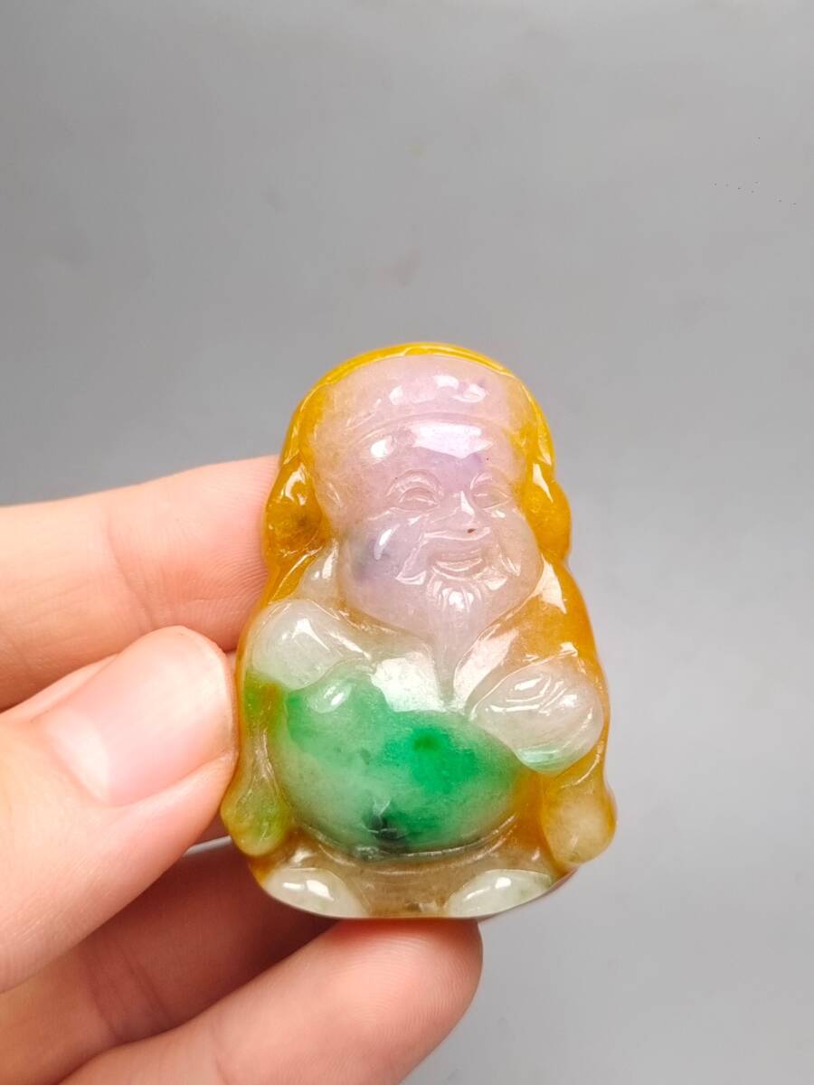 『清・翡翠細密彫・沁色自然・財神ペンダント・根付・裝身具』極細工 置物 古賞物 中国古玩 中国古美術