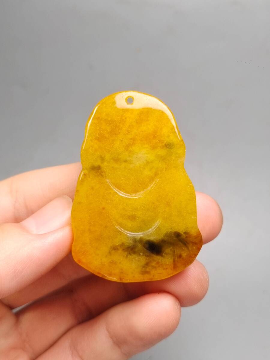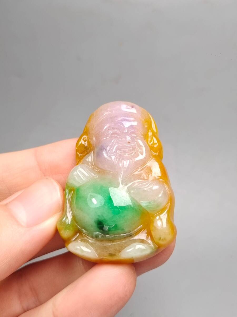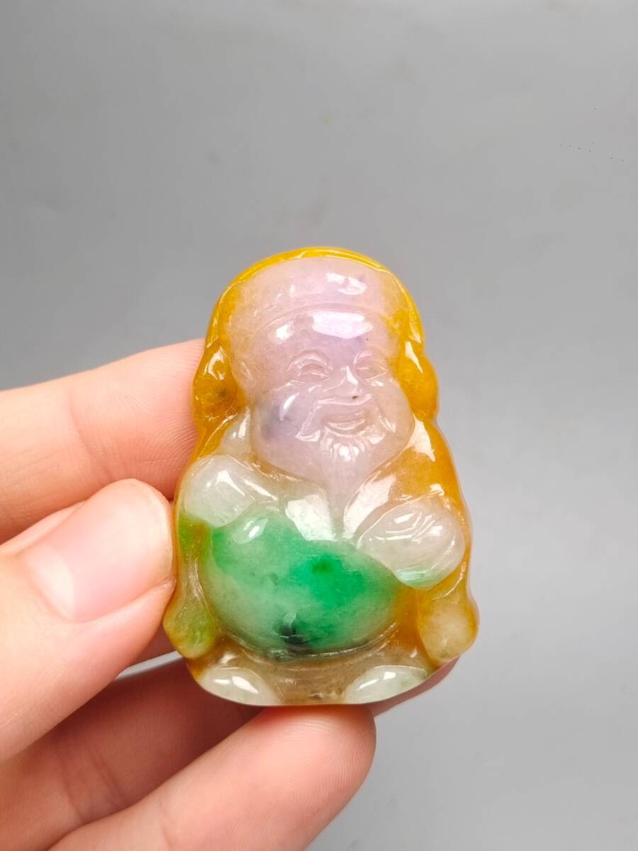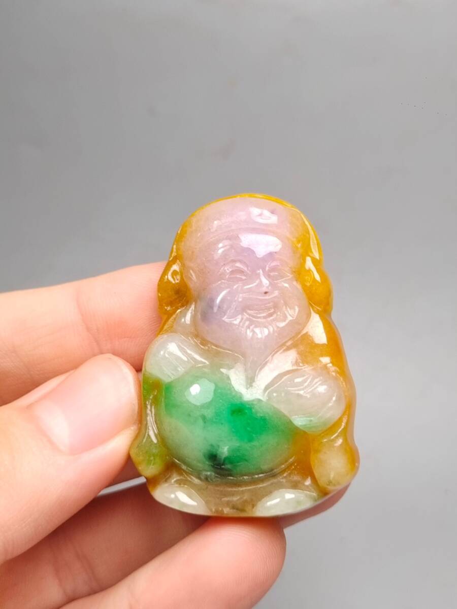 『清・翡翠細密彫・沁色自然・財神ペンダント・根付・裝身具』極細工 置物 古賞物 中国古玩 中国古美術