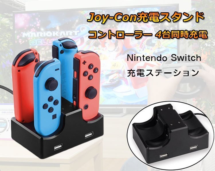 ◆Joy-Con専用充電スタンド Switchコントローラー充電器 4台同時充電対応 USBポート2個搭載