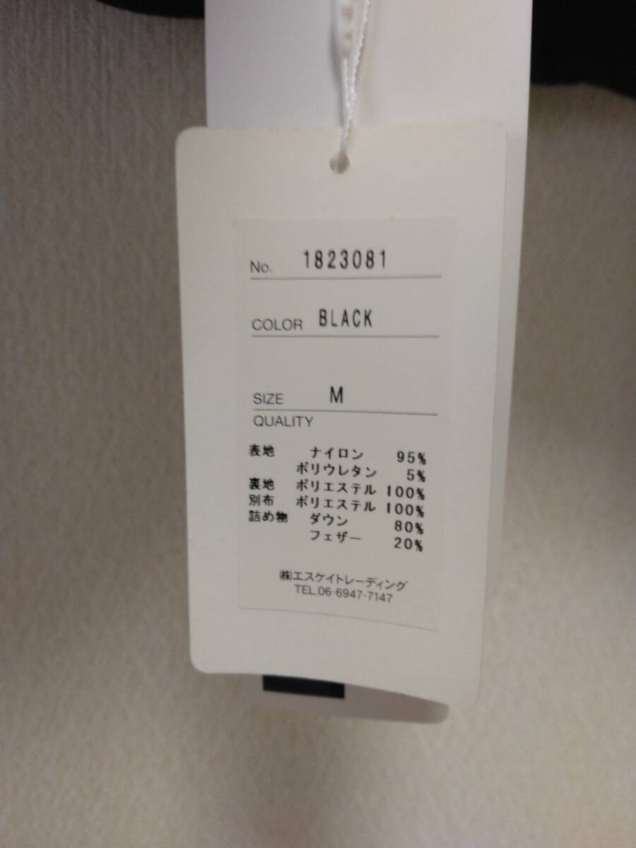 素材:表地(ナイロン95%ポリウレタン5%)、詰め物(ダウン80%フェザー20%)